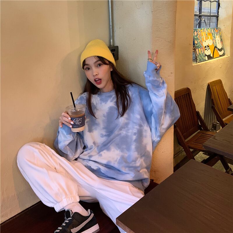 色:絞り染めセーター,スウェットパンツ