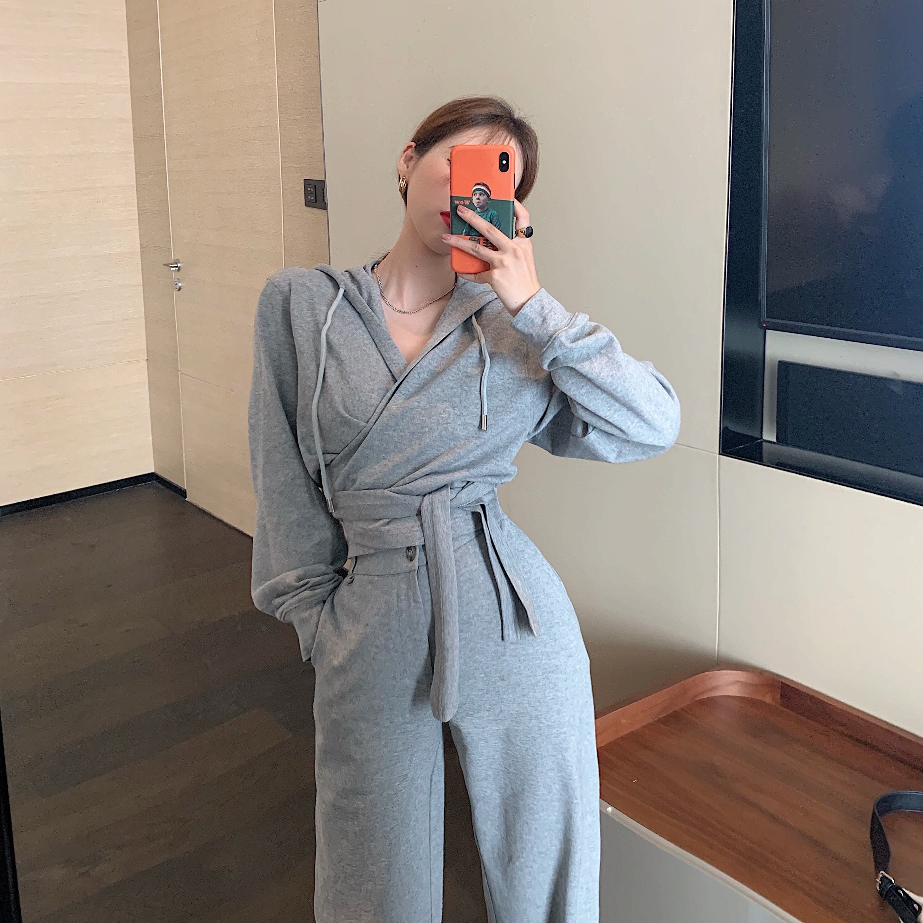 グレー 灰色フードニット セーターハイウエストウエストワイドレッグパンツ ロング マキシ ロング丈 マキシ丈ジャケット 上着 コート ハイウェスト マキシロング丈 ワイドパンツ 女性 レディース 可愛い系47926384098 | nice import1 a5
