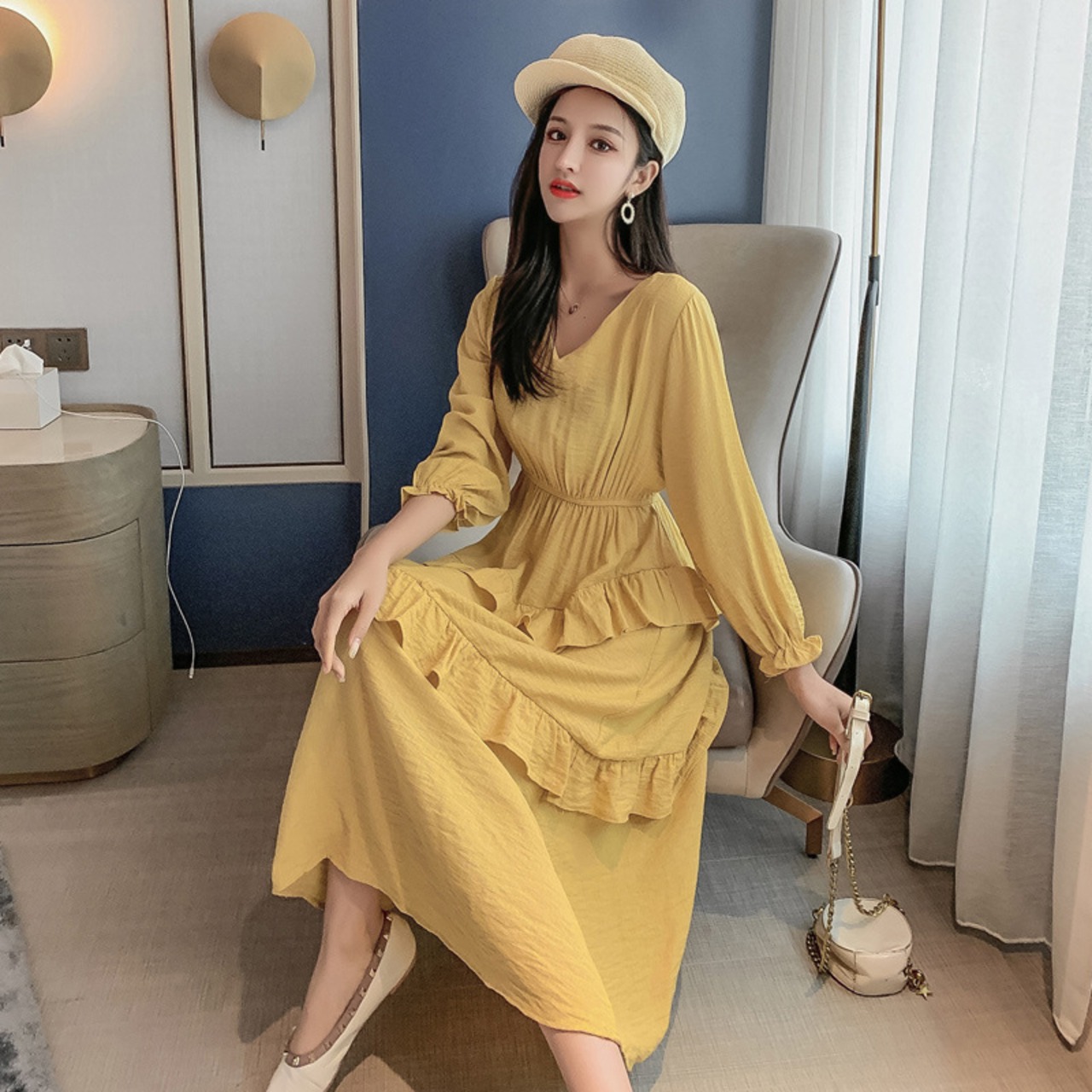 ドレス ワンピースウエスト薄手 ロング マキシロング丈 マキシ丈 女性 レディース フェミニン系69215778549