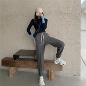 ルーズハイウエストウエストカジュアルパンツ ニットニット セーター ハイウェスト コルセット 女性 レディース 可愛い系73339857750