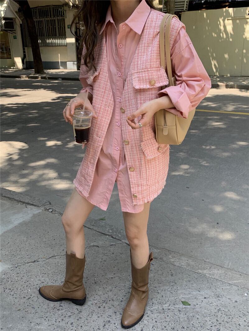 色:ピンクの小さな香りのベスト,緑の小さな香りのベスト,ピンクのシャツ,緑のシャツ