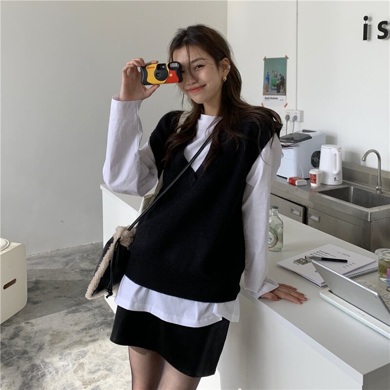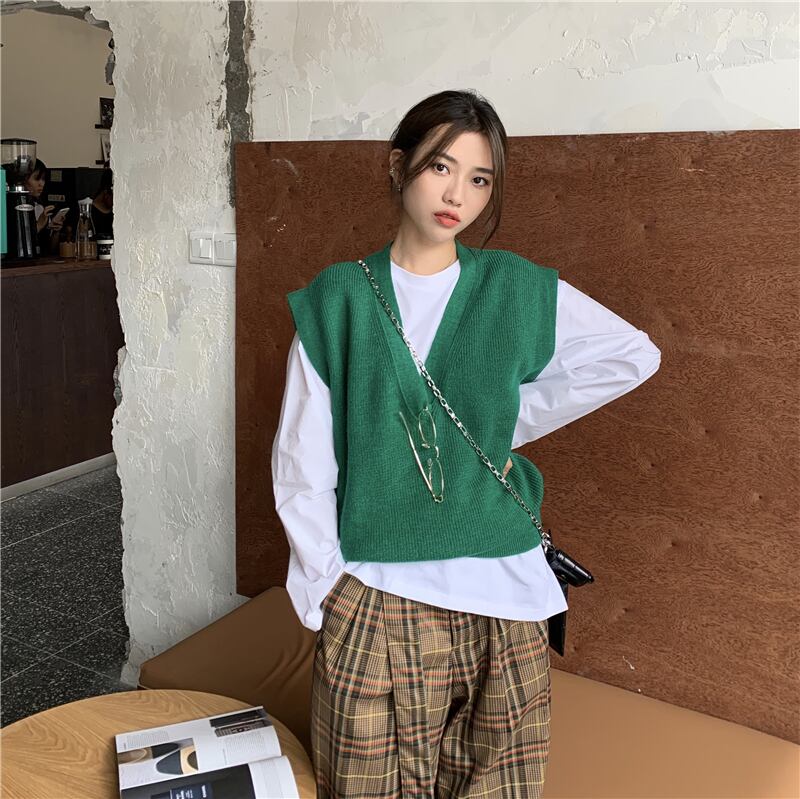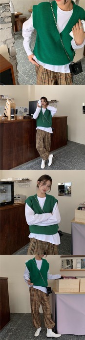 色:白いTシャツ,グリーンベスト,黒のベスト