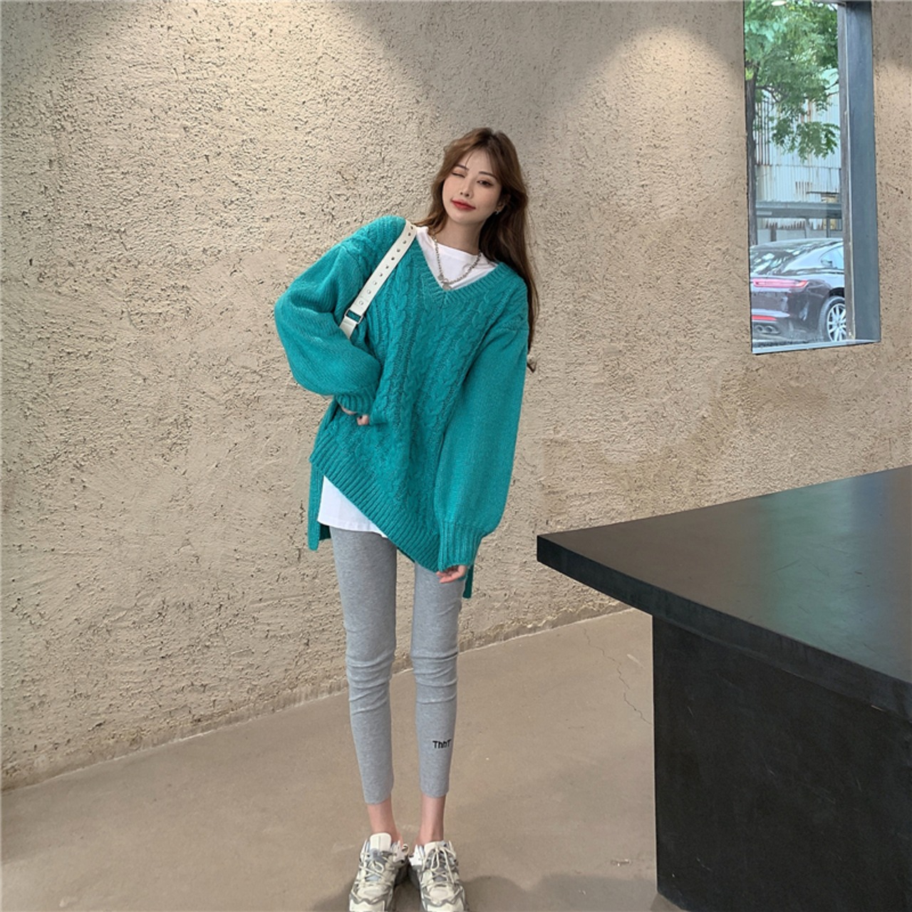 色:グレーのレギンス,黒のレギンス,白いTシャツ,青いセーター,グレーのセーター