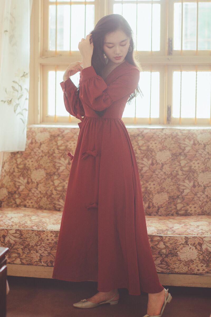 レッド 赤ドレス ワンピーススタンダードウエストスカート ロング マキシ ロング丈 マキシ丈 マキシロング丈 レトロ 女性 レディース フェミニン系80215891280 | nice import1 a5