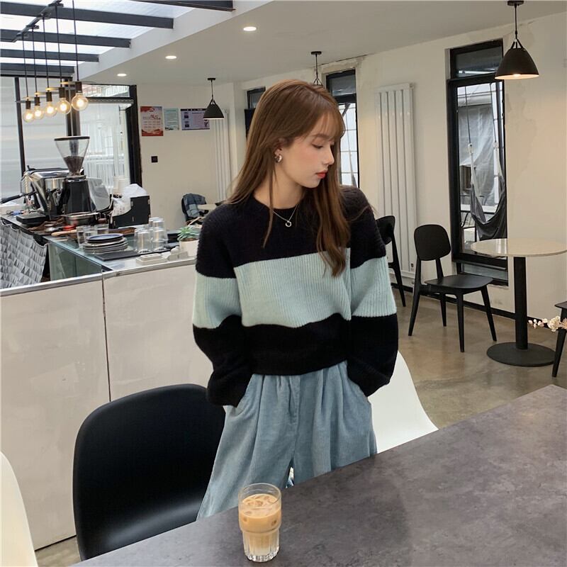 スタイルショート ショート丈 ミニ ミニ丈カラーストライプラウンドネックニット セータールーズニットプルオーバー トップス ロング マキシロング丈 マキシ丈 女性 レディース 可愛い系24152951110 | nice import1 a5
