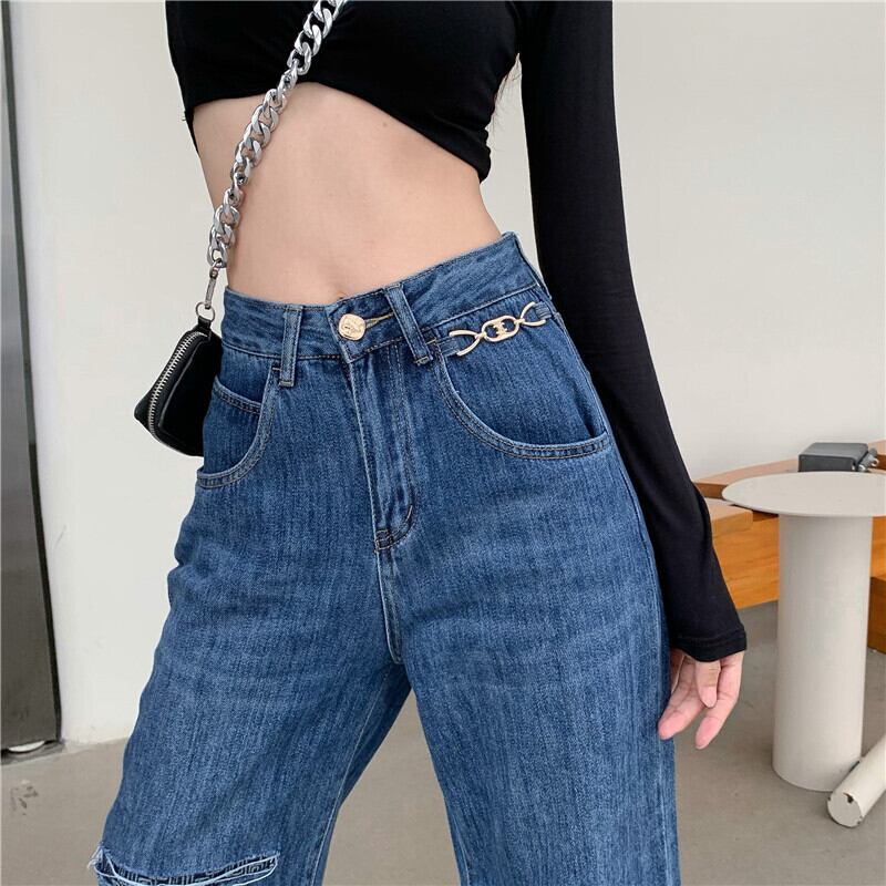 スタイルバック 後ろポケットルーズワイドレッグハイウエストウエストジーンズ デニム ハイウェスト ワイドパンツ 女性 レディース 可愛い系35522300116