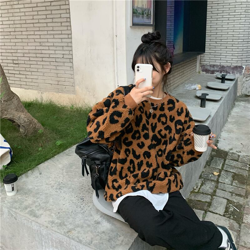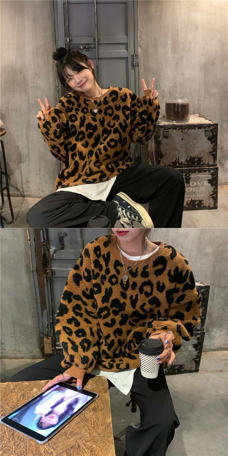 ブラック 黒レオパードプリント柄プルオーバー 長袖 長そでスリーブ 袖ニット セーター ロング マキシロング丈 マキシ丈 女性 レディース 可愛い系13645373468 | nice import1 a5