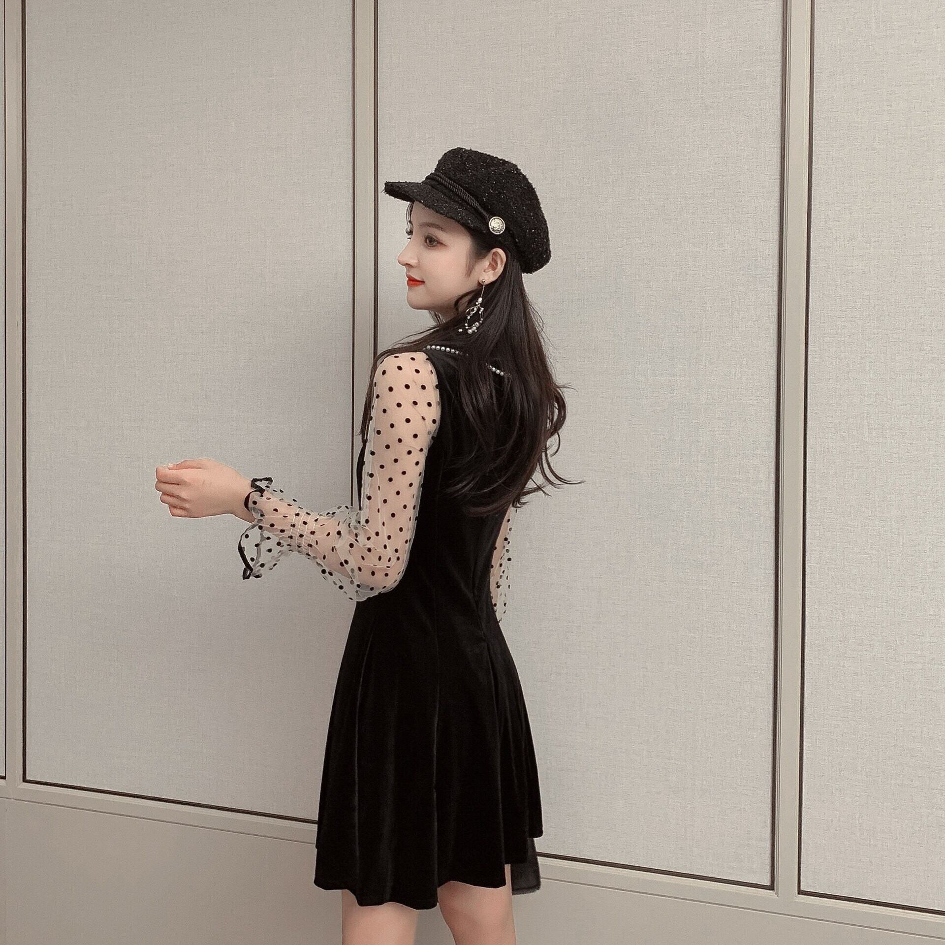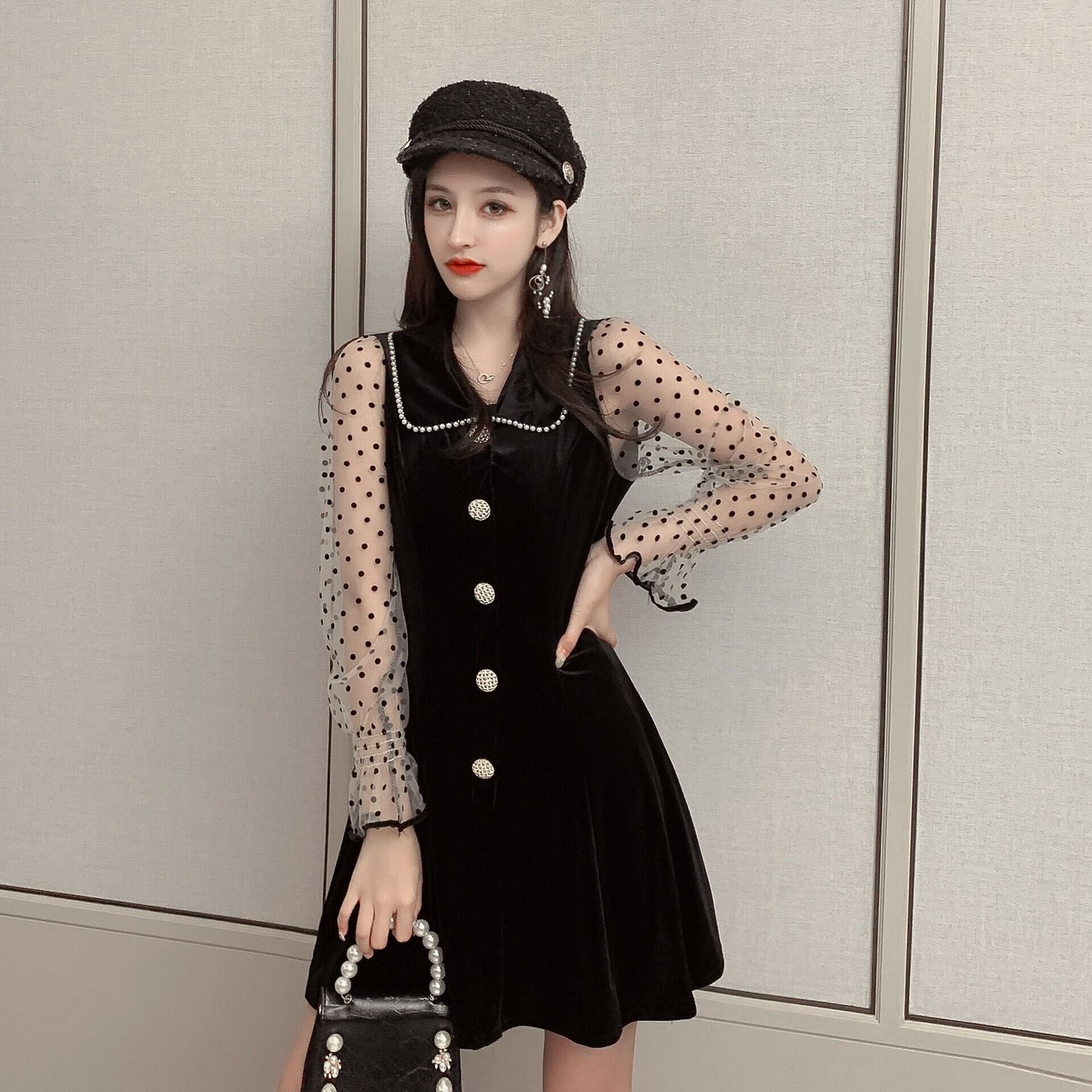 ベルベット水玉 ドット薄手ブラック 黒 ロング マキシロング丈 マキシ丈 レース シースルー チュール オーガンジー 女性 レディース フェミニン系5403064598 | nice import1 a5