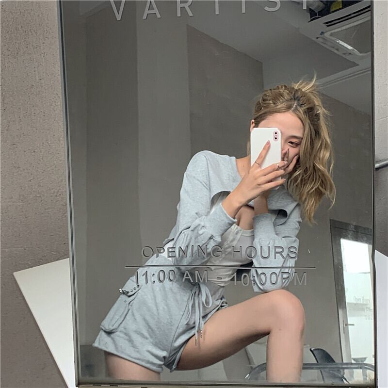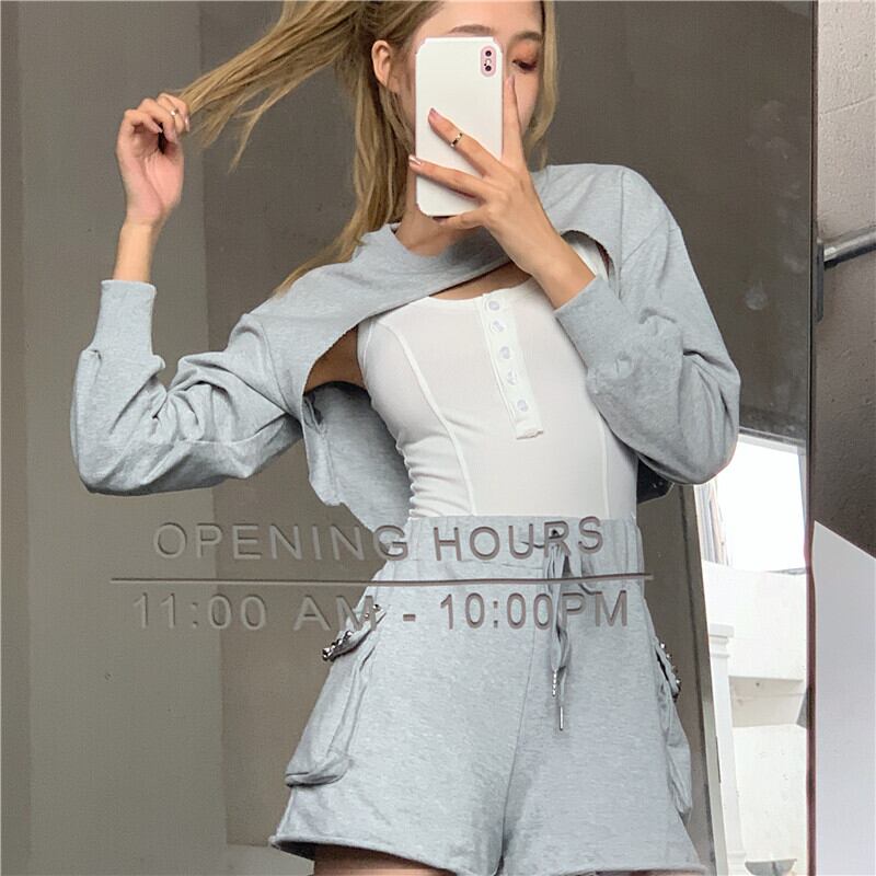 色:グレーコート,グレーのショートパンツ,白いベスト