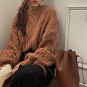 スタンダードルーズプルオーバー ニット セーター長袖 長そでスリーブ 袖ニットトップス ロング マキシロング丈 マキシ丈 レトロ 女性 レディース 可愛い系83429080149 | nice import1 a5