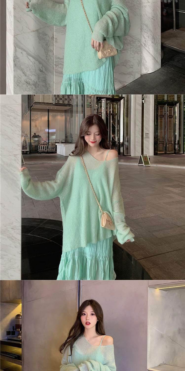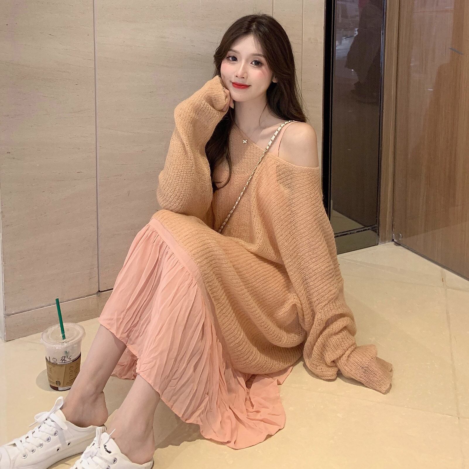 スカート レディーススタイルプリーツロング マキシ ロング丈 マキシ丈ドレス ワンピースルーズ薄手ニット セーター マキシロング丈 女性 レディース 可愛い系54001346729 | nice import1 a5