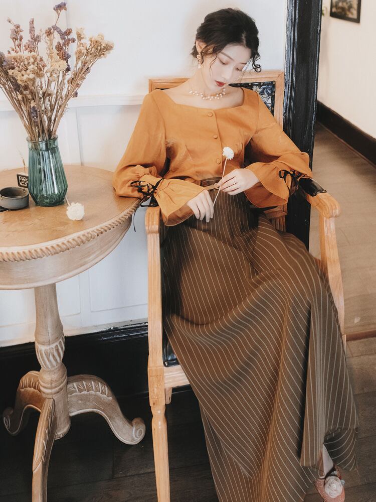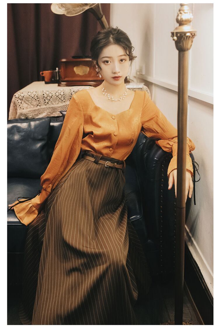 スタンダードスリーブ 袖シャツ ハイウエストストライプスカート ランタンスリーブ バルーンスリーブ ランタン袖 バルーン袖 レトロ レース レースアップ 女性 レディース フェミニン系33334979757 | nice import1 a5