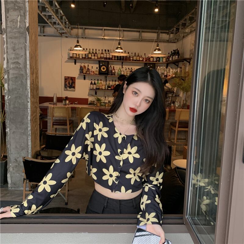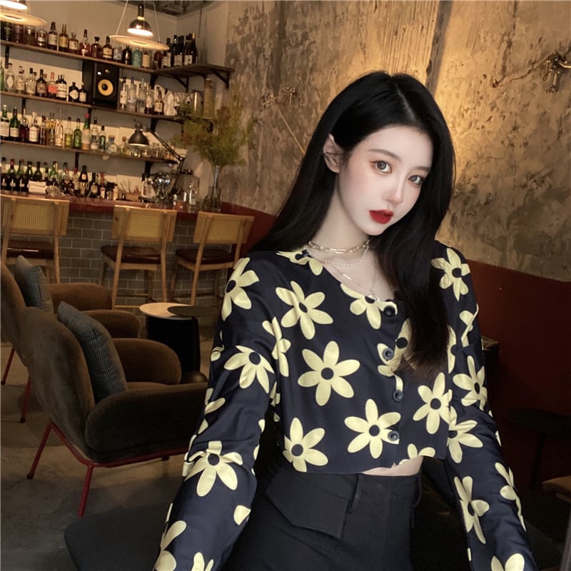 スタンダード花柄 お花 フラワープリント柄クロップドTシャツ シャツ ハート長袖 長そでスリーブ 袖 ロング マキシロング丈 マキシ丈 レトロ 女性 レディース 可愛い系19526603349 | nice import1 a5