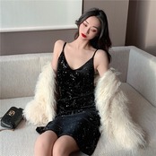 Vネックウエストベルベットジッパーブラック 黒 女性 レディース フェミニン系33660432238