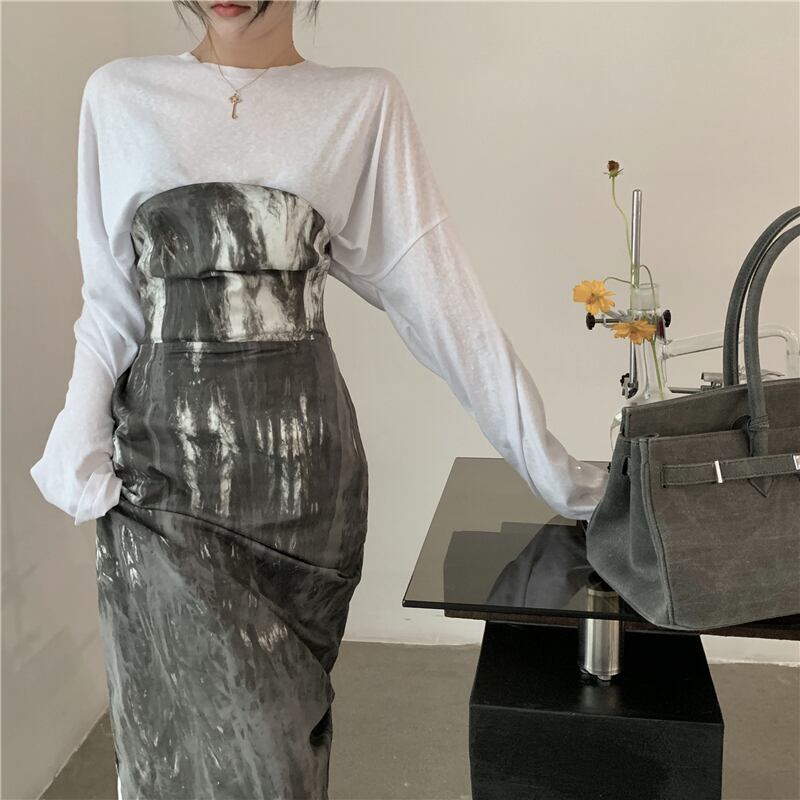 ルーズスリット長袖 長そでスリーブ 袖Tシャツ バック 後ろウエスト薄手トップス スカート ロング マキシロング丈 マキシ丈 女性 レディース 可愛い系16996883698 | nice import1 a5
