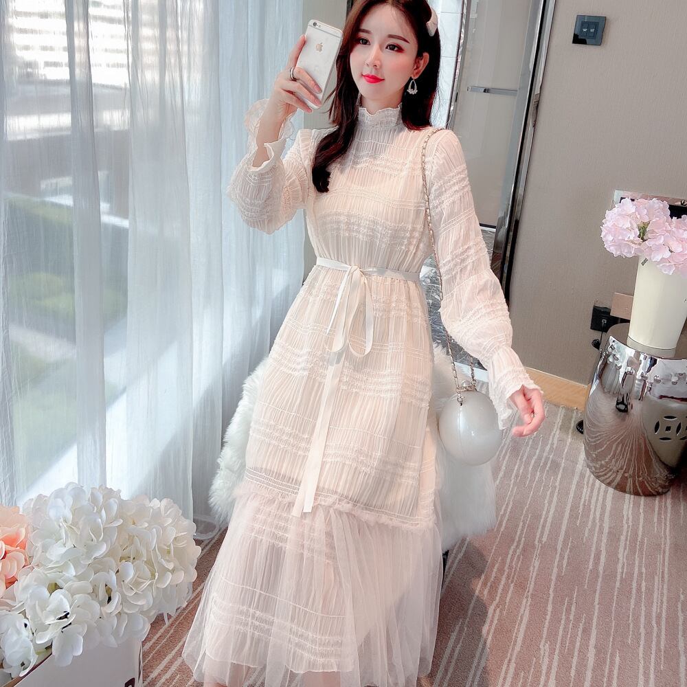 カラーレースドレス ワンピースレディースルーズメッシュ レース シースルー チュール オーガンジーロング マキシ ロング丈 マキシ丈スカート 長袖 長そでスリーブ 袖シフォン マキシロング丈 女性 レディース フェミニン系77642641686 | nice import1 a5
