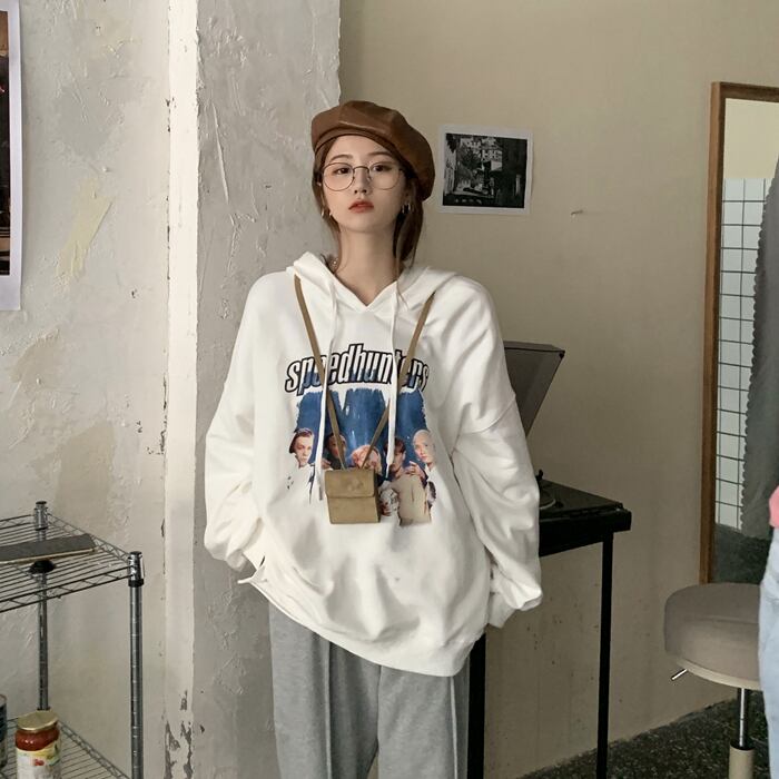 ルーズプリントフードニット セータートップス 女性 レディース 可愛い系26009562124