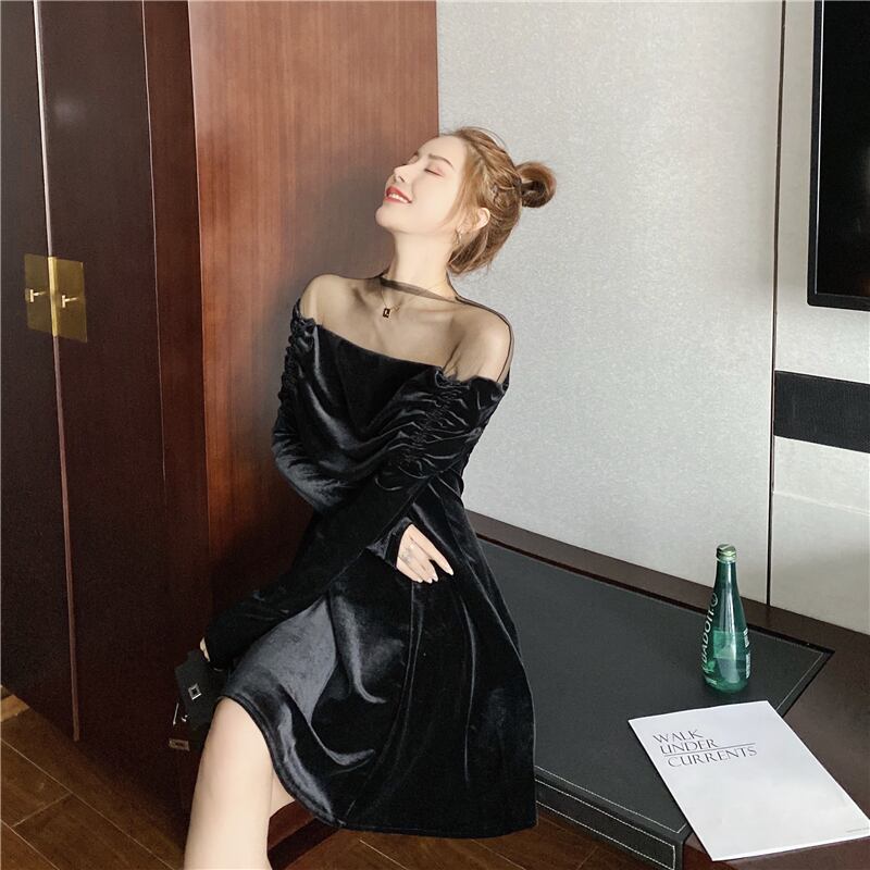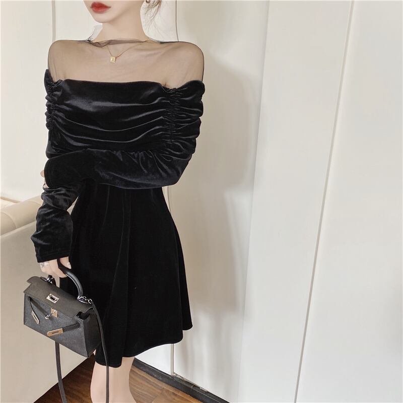 メッシュ レース シースルー チュール オーガンジープリーツゴールド 金色ベルベットドレス ワンピースウエストブラック 黒 女性 レディース 可愛い系6064568857 | nice import1 a5