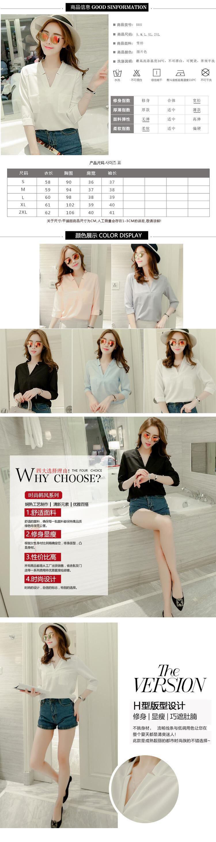 Vネックシフォンシャツ スタイルルーズプルオーバー ホワイト 白 女性 レディース フェミニン系52812264016