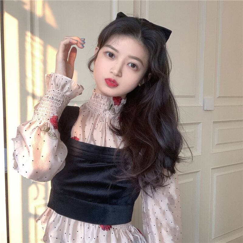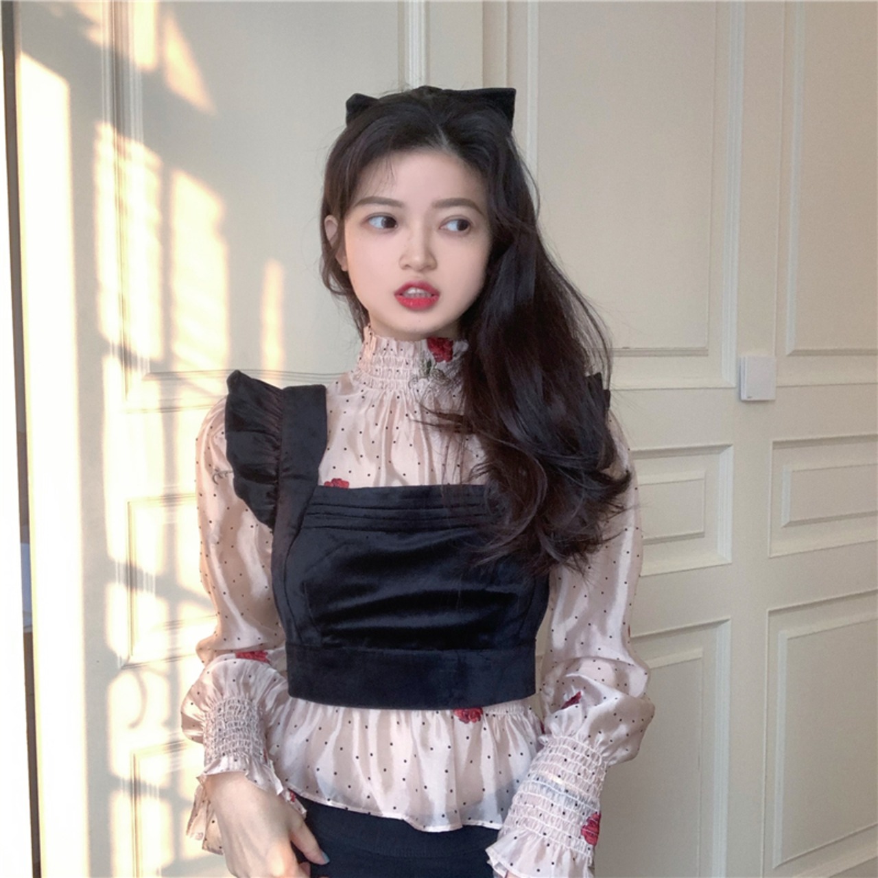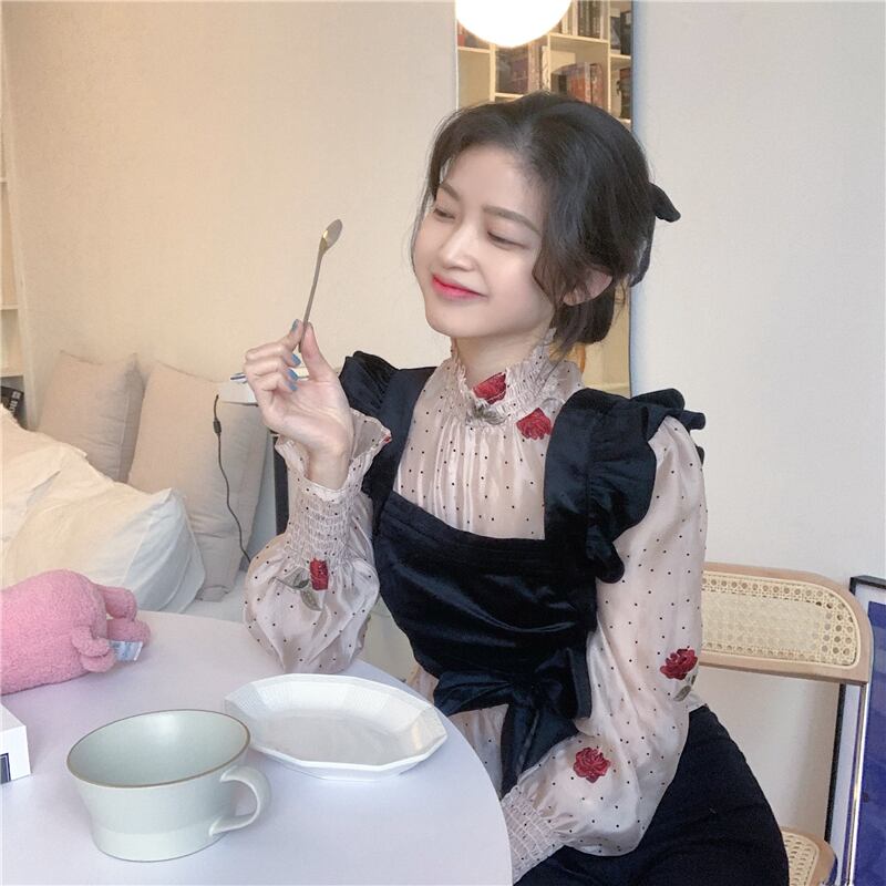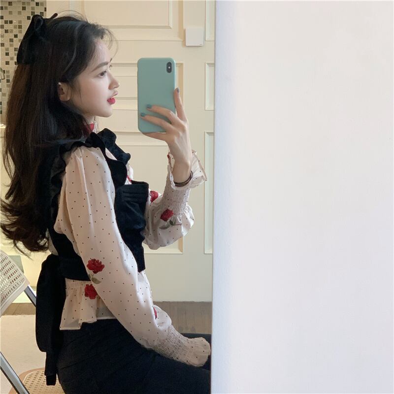 色:アプリコットピンクトップ,黒のベスト