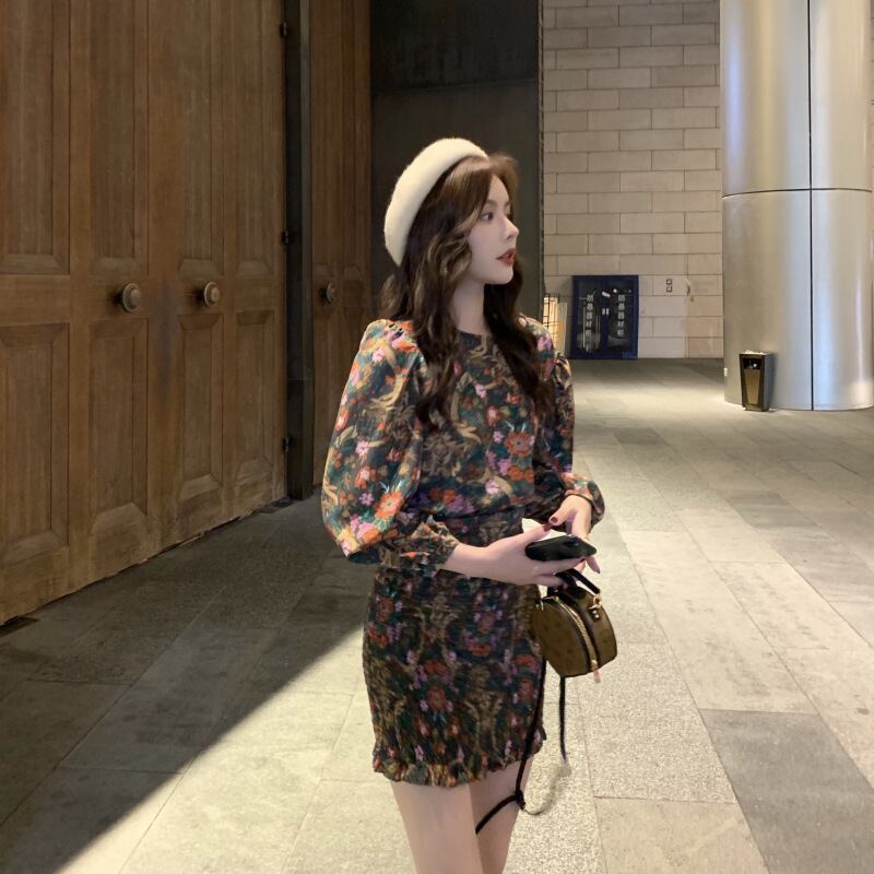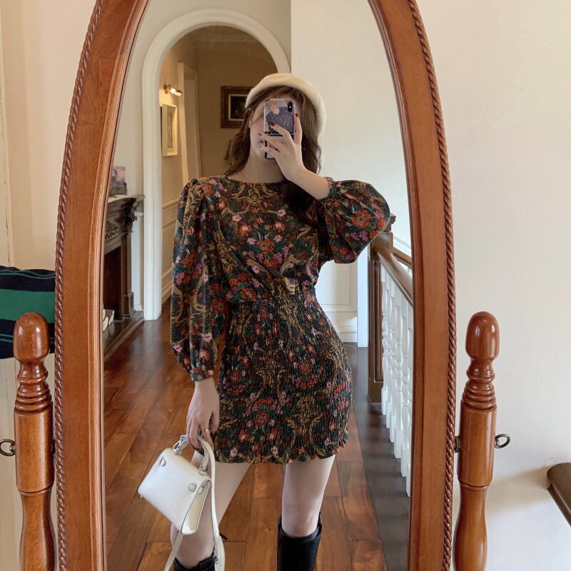 スタンダードラウンドネックスリーブ 袖花柄 お花 フラワーウエストドレス ワンピース ランタンスリーブ バルーンスリーブ ランタン袖 バルーン袖 レトロ スカート 女性 レディース フェミニン系58155572764 | nice import1 a5