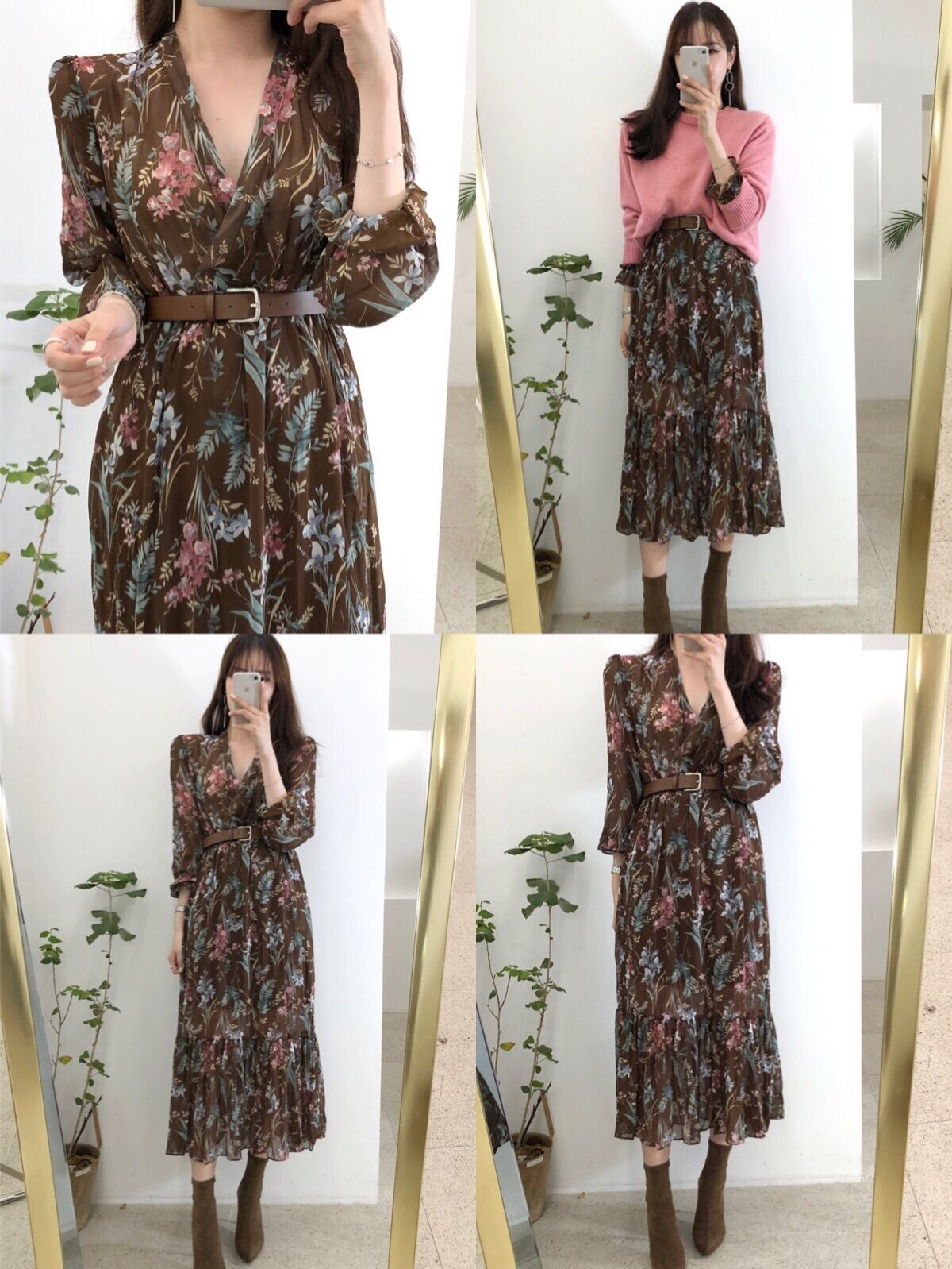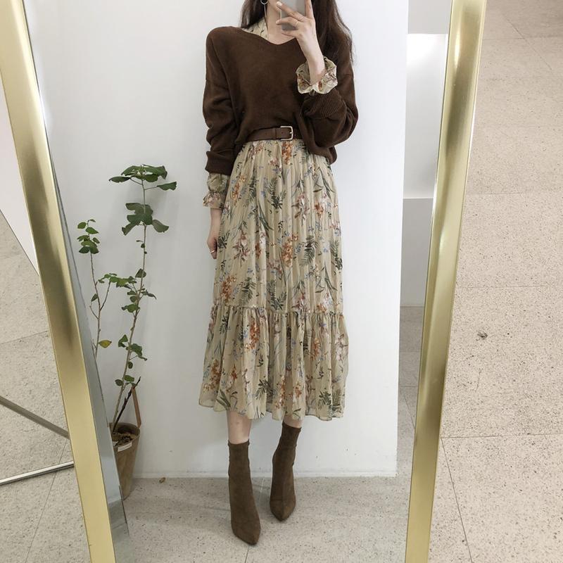 スタンダードVネックルーズウエストロング マキシ ロング丈 マキシ丈シフォン花柄 お花 フラワー マキシロング丈 レトロ 女性 レディース フェミニン系22343334577 | nice import1 a5