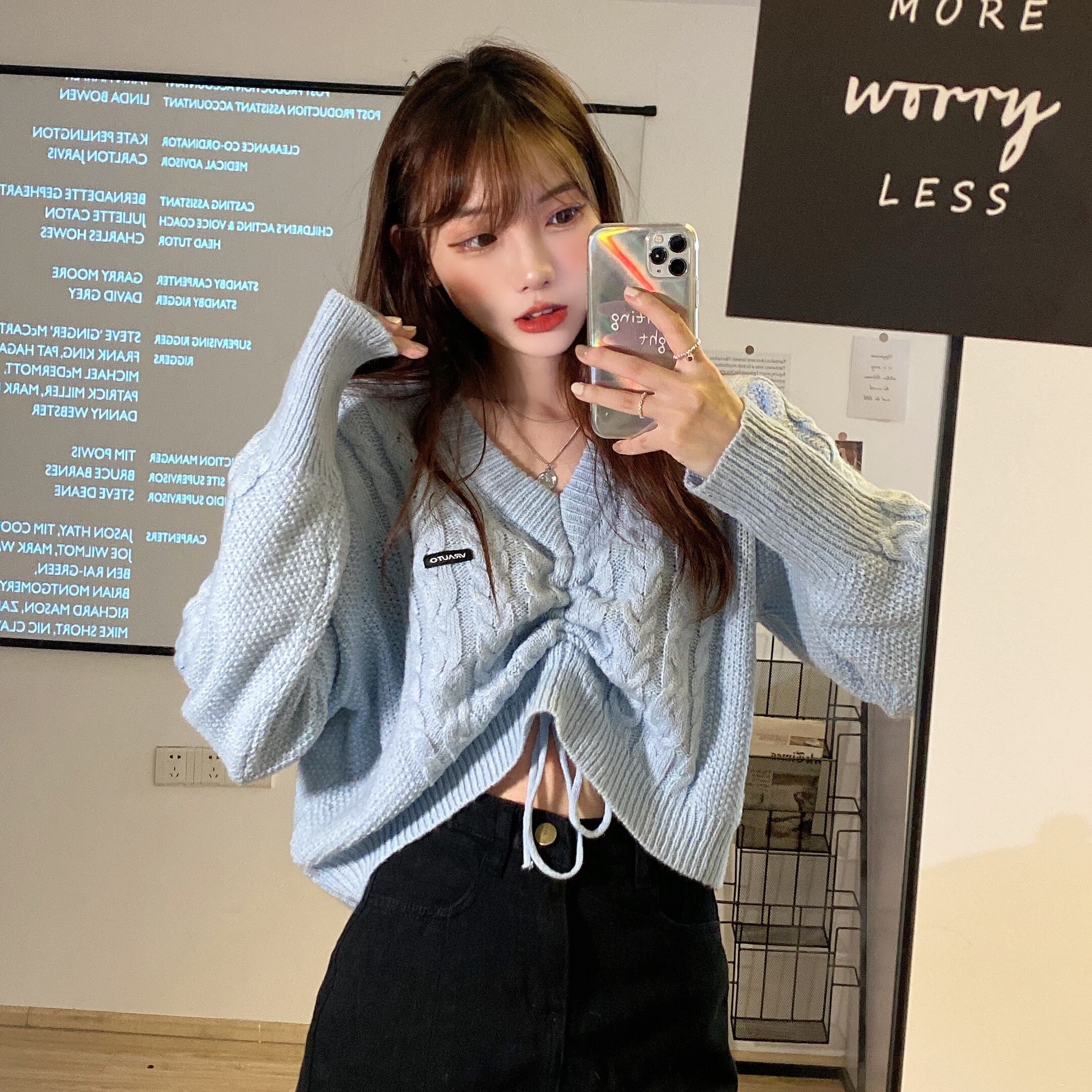 ルーズVネックニットニット セータースタイルハイウエストウエストショート ショート丈 ミニ ミニ丈トップス ハイウェスト 女性 レディース 可愛い系8200858657 | nice import1 a5