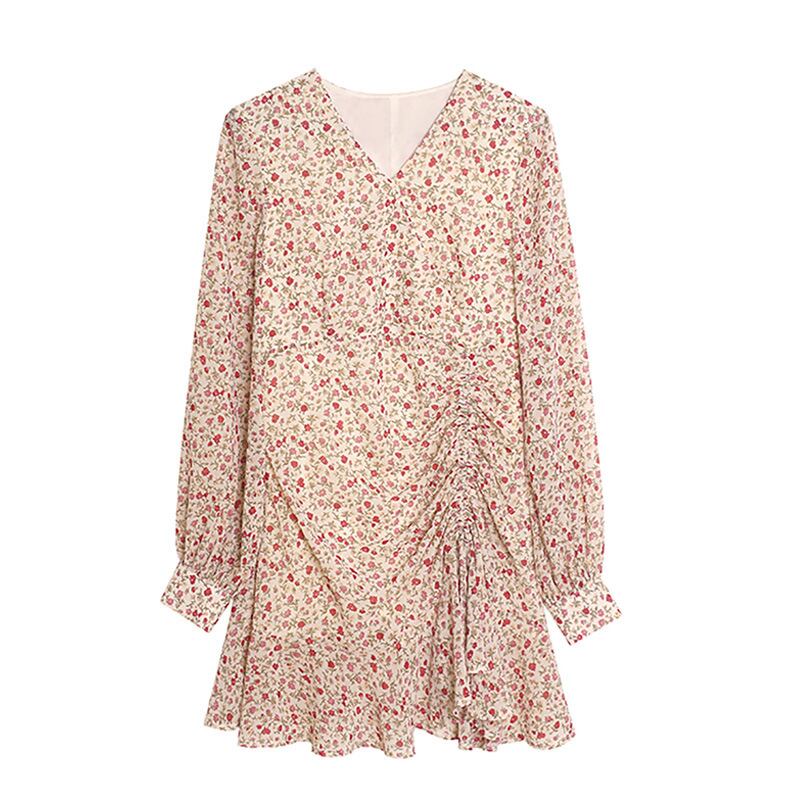 スタンダード花柄 お花 フラワードレス ワンピースシフォンVネックプリーツ ロング マキシロング丈 マキシ丈 レトロ 女性 レディース フェミニン系64678918396 | nice import1 a5