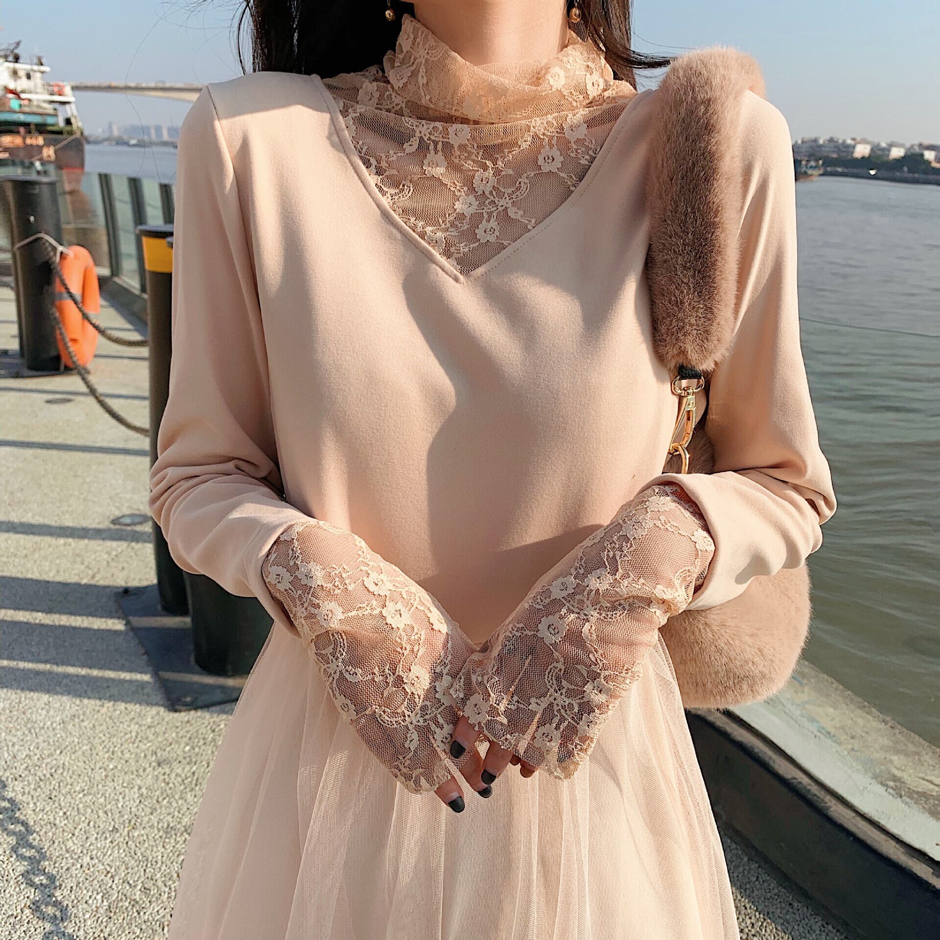 レースメッシュ レース シースルー チュール オーガンジードレス ワンピースレディース長袖 長そでスリーブ 袖 ロング マキシロング丈 マキシ丈 ステッチ 女性 レディース フェミニン系11980773161 | nice import1 a5