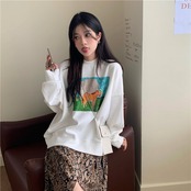ルーズラウンドネックプリントニット セーター ロング マキシロング丈 マキシ丈 女性 レディース 可愛い系46709482807