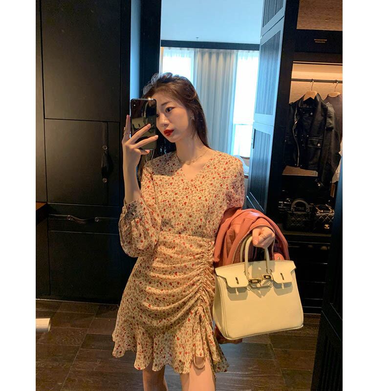 スタンダード花柄 お花 フラワードレス ワンピースシフォンVネックプリーツ ロング マキシロング丈 マキシ丈 レトロ 女性 レディース フェミニン系17695885759 | nice import1 a5