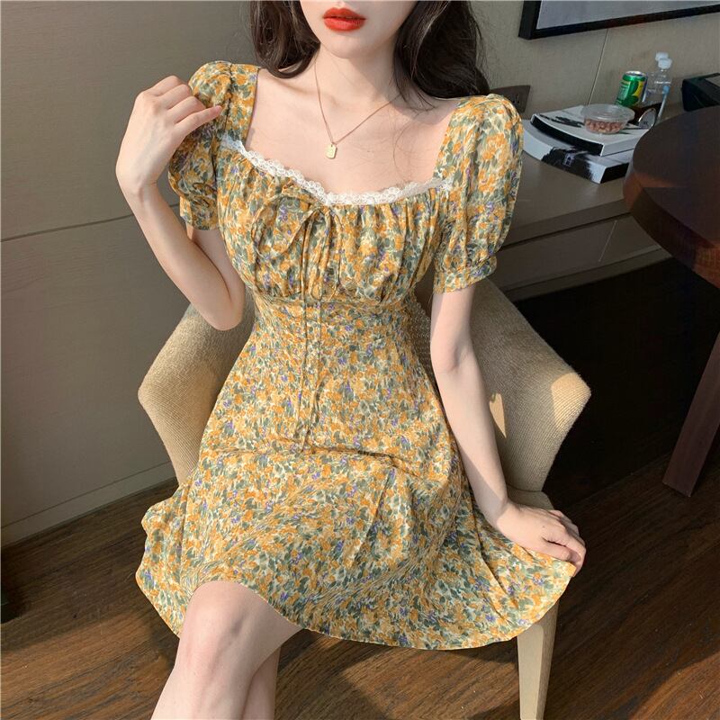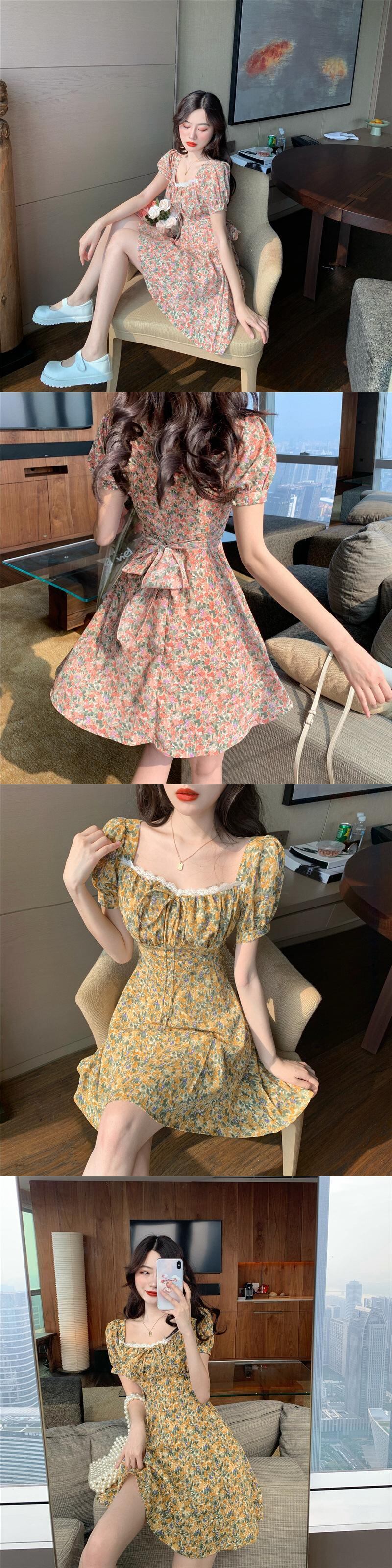 スタンダード花柄 お花 フラワーショート ショート丈 ミニ ミニ丈スリーブ 袖プリーツドレス ワンピース レトロ エメラルド 翠玉 緑玉 女性 レディース フェミニン系68876524757 | nice import1 a5