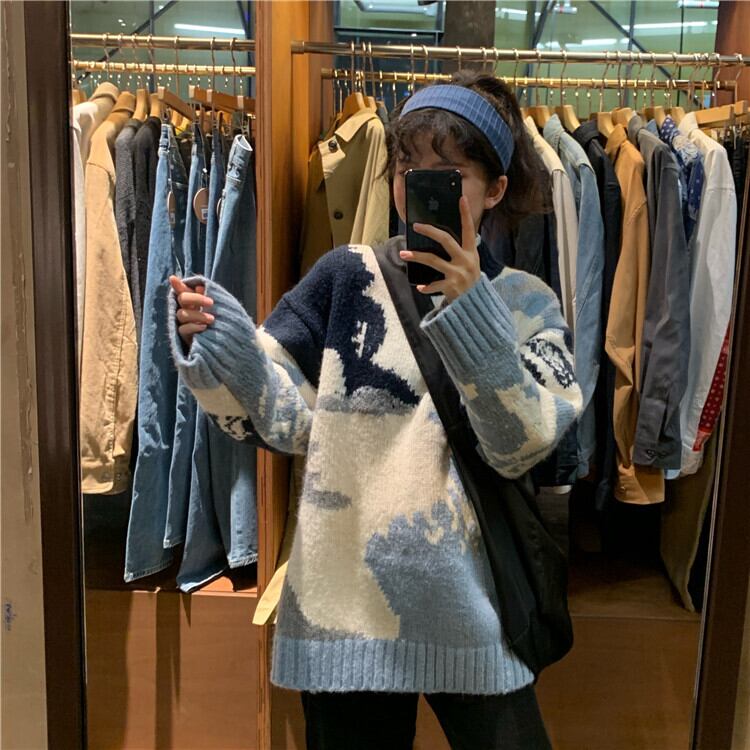 ブルー 青ホワイト 白ルーズニット セーター 女性 レディース 可愛い系39659451060
