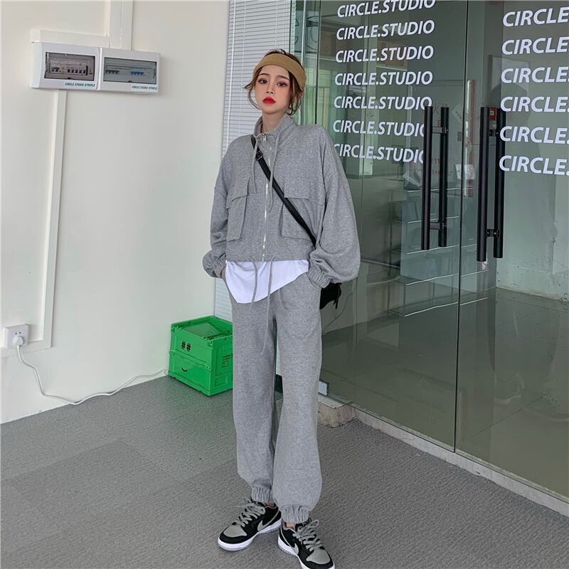 色:白いTシャツ,グレーパンツ,グレーコート