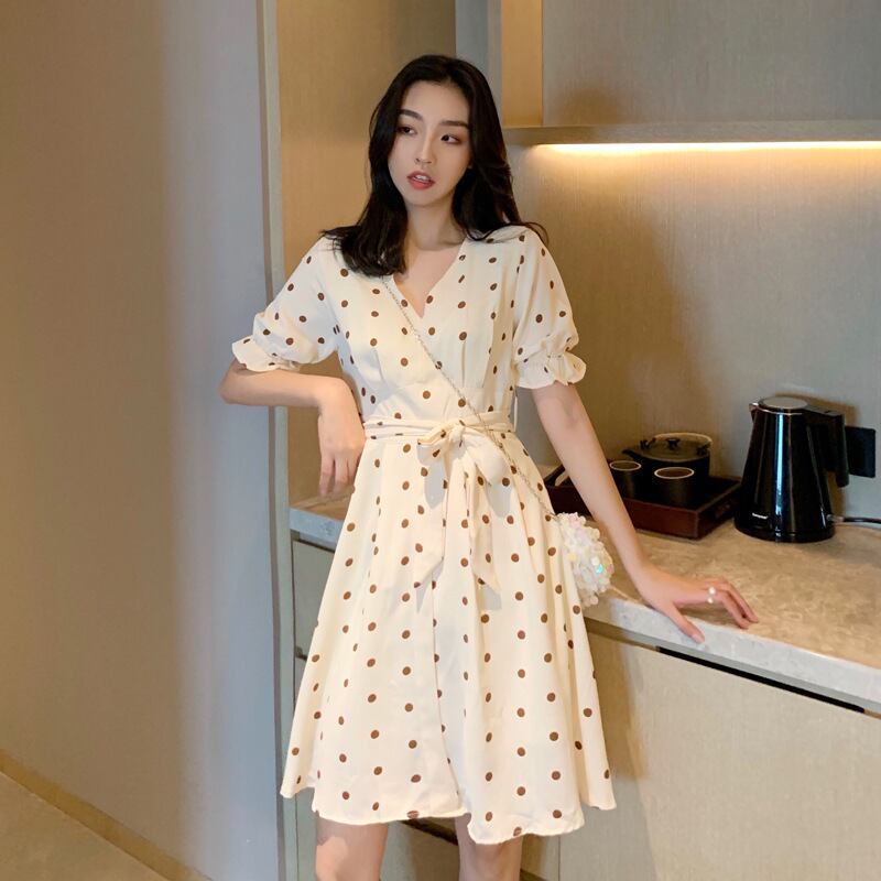 スタンダード水玉 ドットVネック半袖 半そでスリーブ 袖 ショート ショート丈 ミニ ミニ丈 レトロ ハーフスリーブ 女性 レディース フェミニン系35076495297 | nice import1 a5