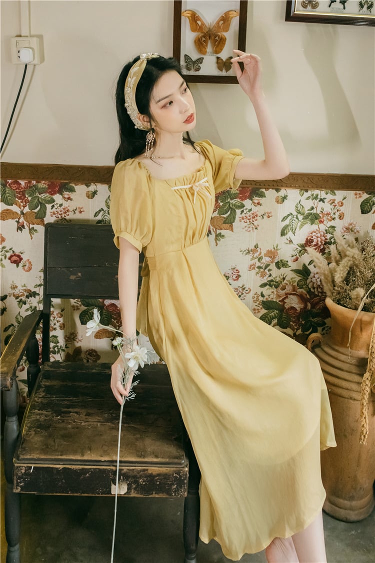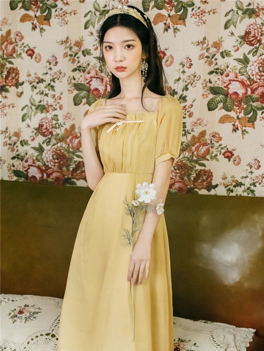 スタンダードイエロー 黄色ドレス ワンピース半袖 半そでスリーブ 袖シフォンロング マキシ ロング丈 マキシ丈 ショート ショート丈 ミニ ミニ丈 マキシロング丈 レトロ ハーフスリーブ スカート スクウェア スクエア 女性 レディース フェミニン系63131654300 | nice import1 a5