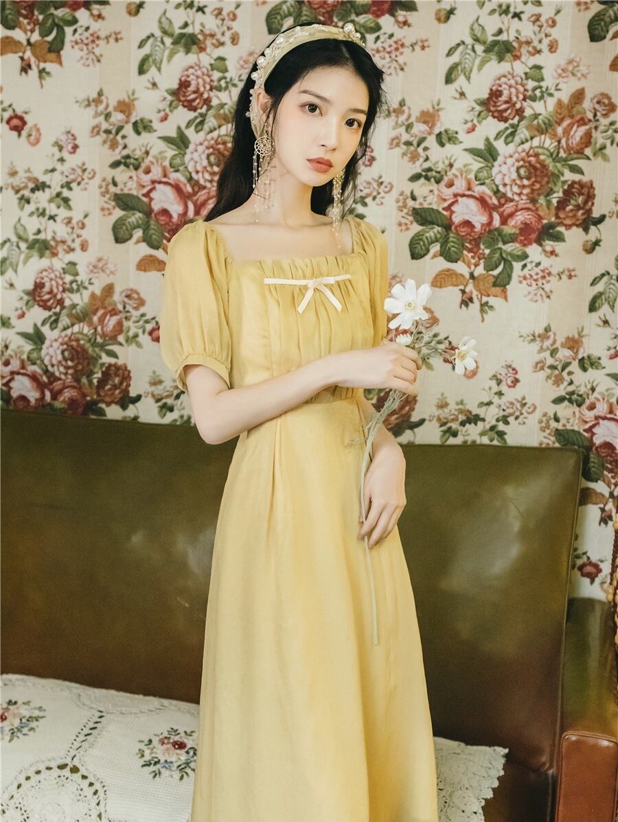 スタンダードイエロー 黄色ドレス ワンピース半袖 半そでスリーブ 袖シフォンロング マキシ ロング丈 マキシ丈 ショート ショート丈 ミニ ミニ丈 マキシロング丈 レトロ ハーフスリーブ スカート スクウェア スクエア 女性 レディース フェミニン系63131654300