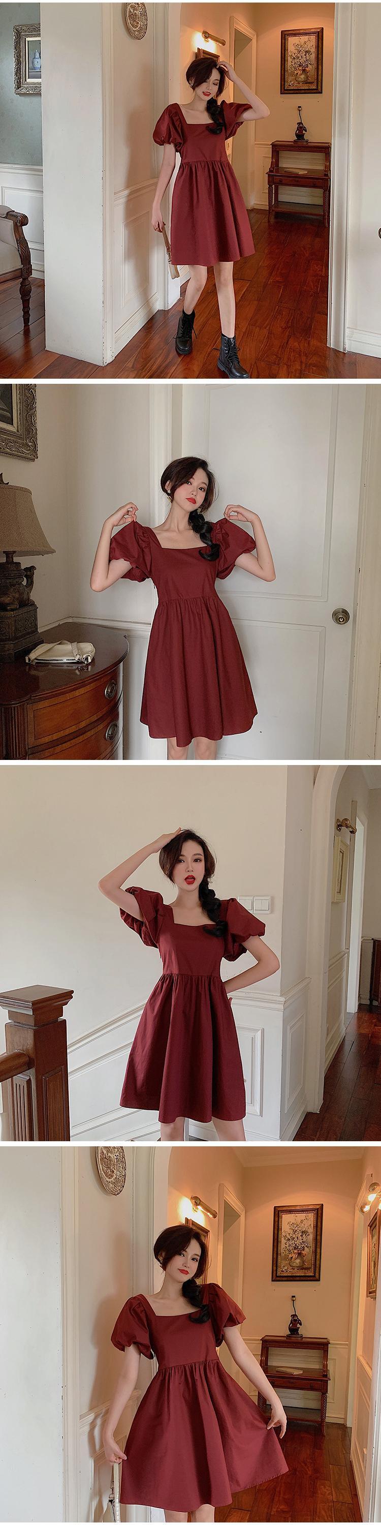 スタンダードカラースリーブ 袖ドレス ワンピースソリッド レトロ かわいい 可愛い ガーリー 大人可愛い 大人かわいい フェミニン 大人ガーリー ソリッドカラー スクウェア スクエア 女性 レディース フェミニン系75429069052