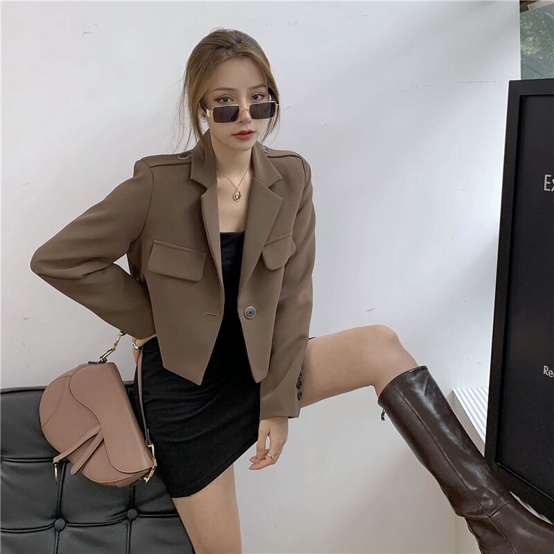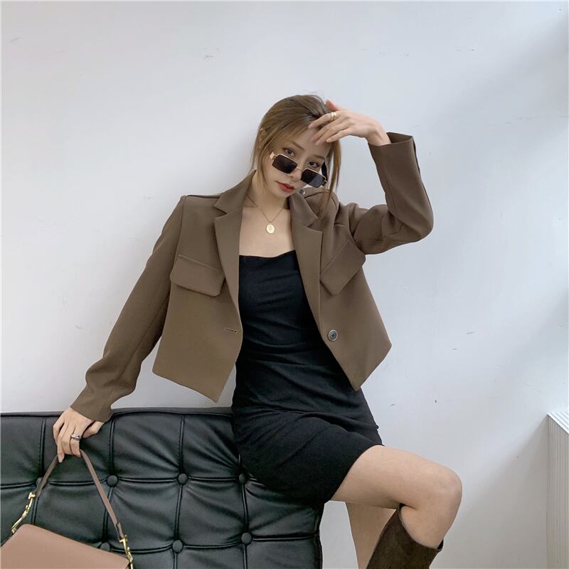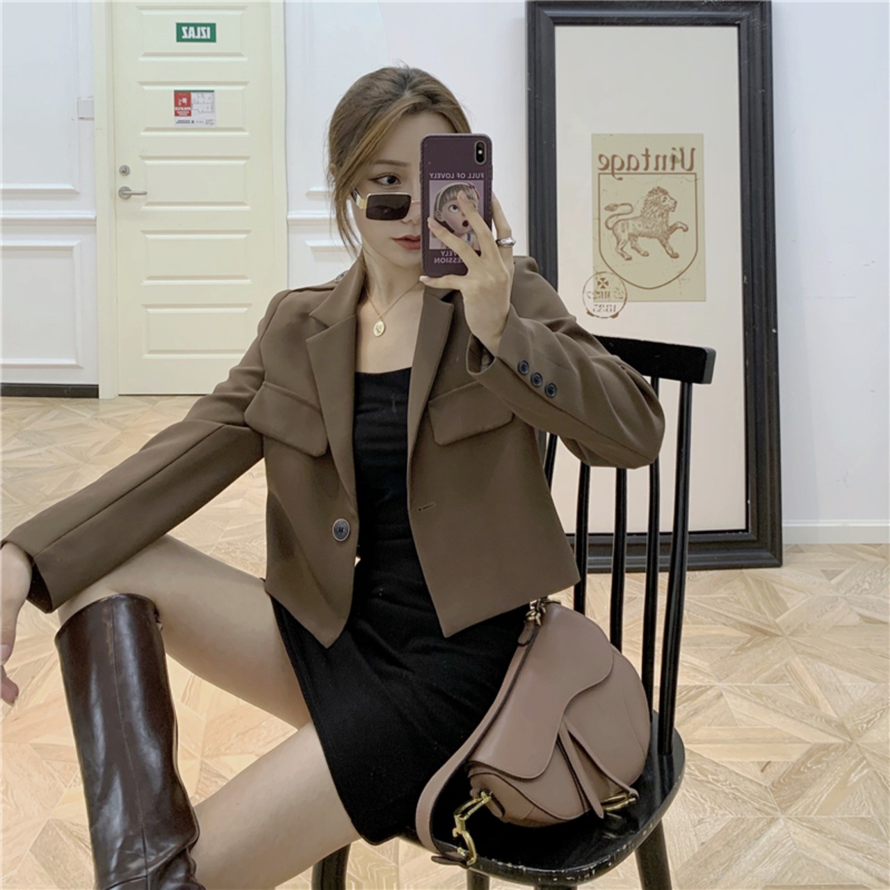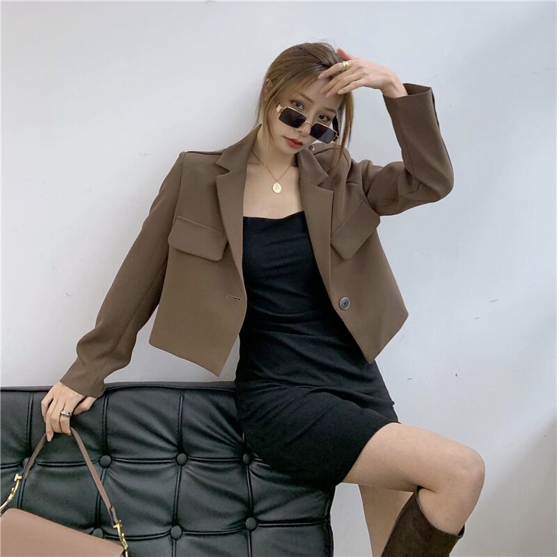 色:コーヒージャケット,黒いジャケット,グレーのドレス,ブラックサスペンダースカート