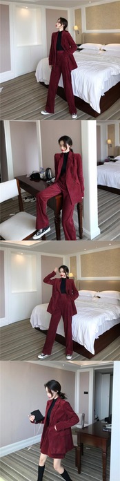 色:ワインレッドのズボン,ワインレッドコート,バーガンディショートスカート(伸縮性ウエスト)