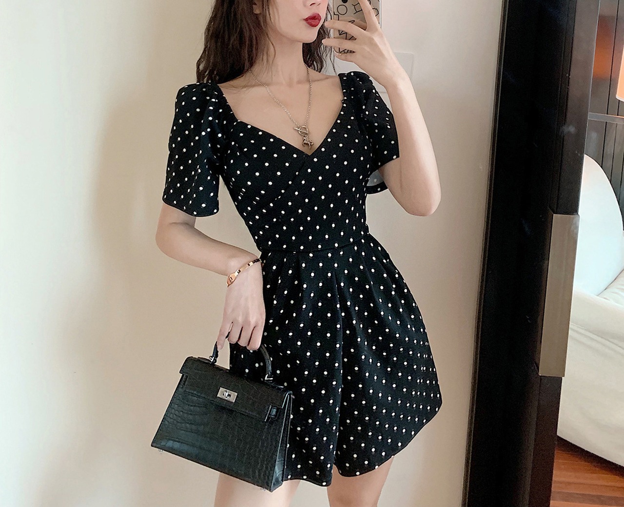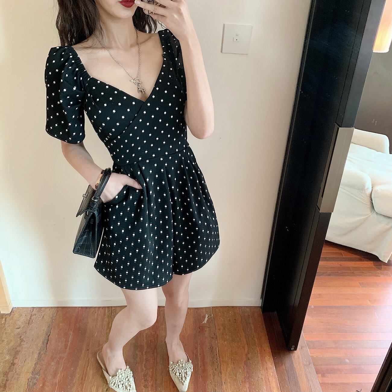 スタンダード水玉 ドットスリーブ 袖ウエスト薄手ワイドレッグワンピースショーツ ショート ショート丈 ミニ ミニ丈 レッド 赤 レトロ ブルマー ワイドパンツ 女性 レディース フェミニン系64155266195 | nice import1 a5