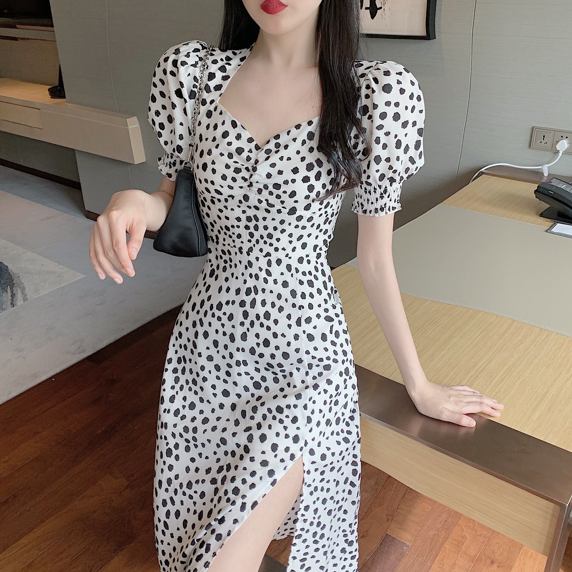 色:ホワイトビッグポルカドットドレス