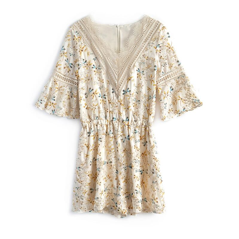 レースVネックハイウエストウエストスリーブ 袖花柄 お花 フラワージャンプスーツ オールインワン ショーツ レディース ハイウェスト ショート ショート丈 ミニ ミニ丈 レッド 赤 ブルマー 女性 レディース フェミニン系65898630665 | nice import1 a5