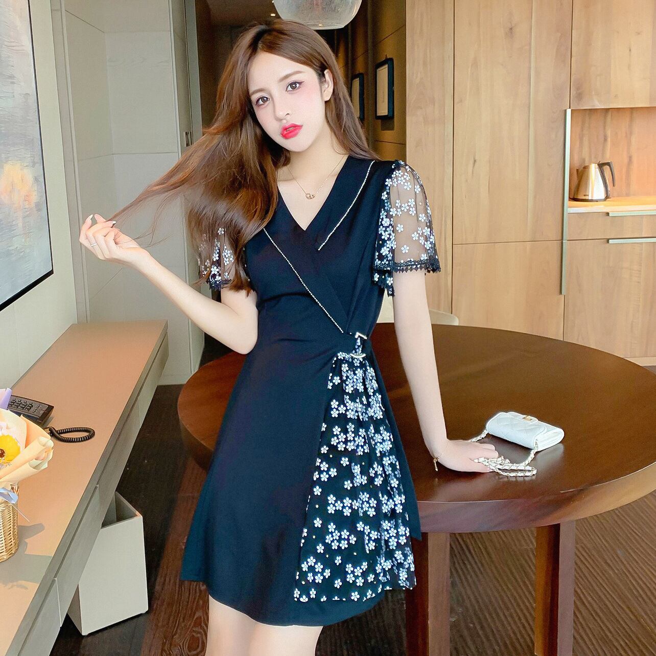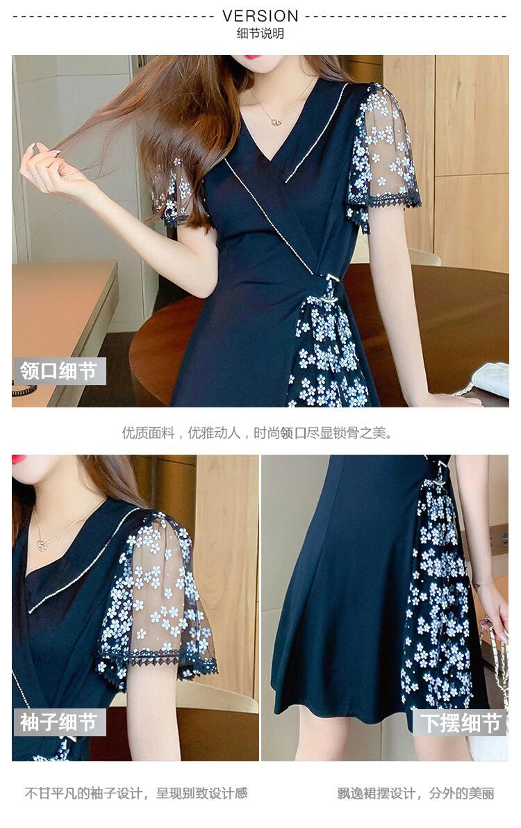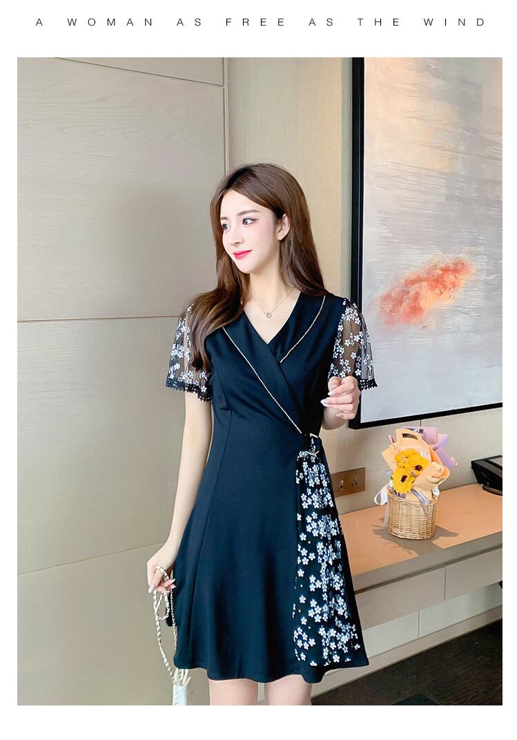 ウエストメッシュ レース シースルー チュール オーガンジースリーブ 袖Aラインドレス ワンピースブラック 黒 ショート ショート丈 ミニ ミニ丈 ステッチ 女性 レディース フェミニン系53611319907 | nice import1 a5