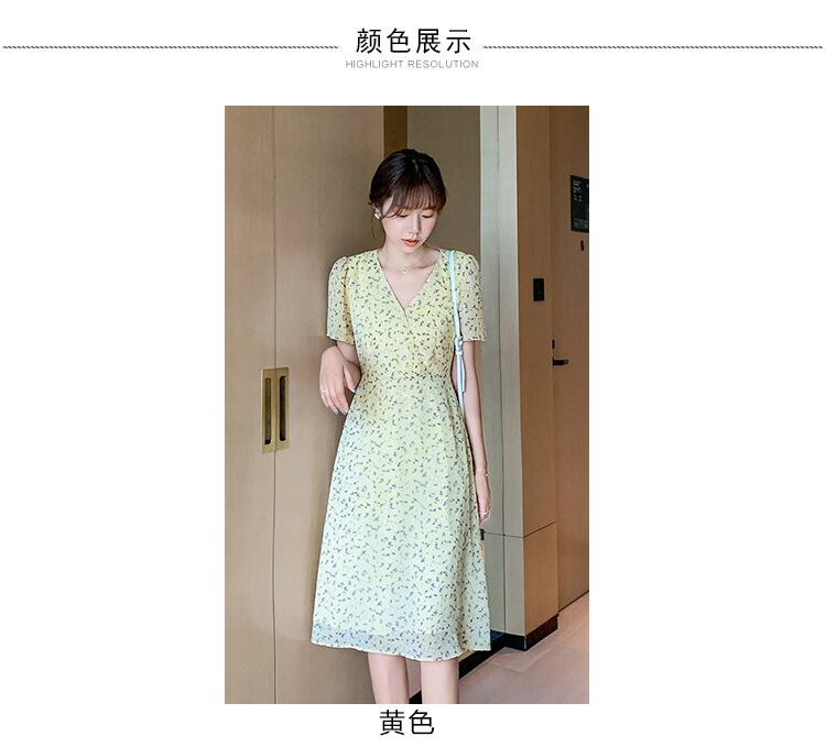 ドレス ワンピースシフォンウエストスタイルVネック花柄 お花 フラワー スカート 女性 レディース フェミニン系17099139692