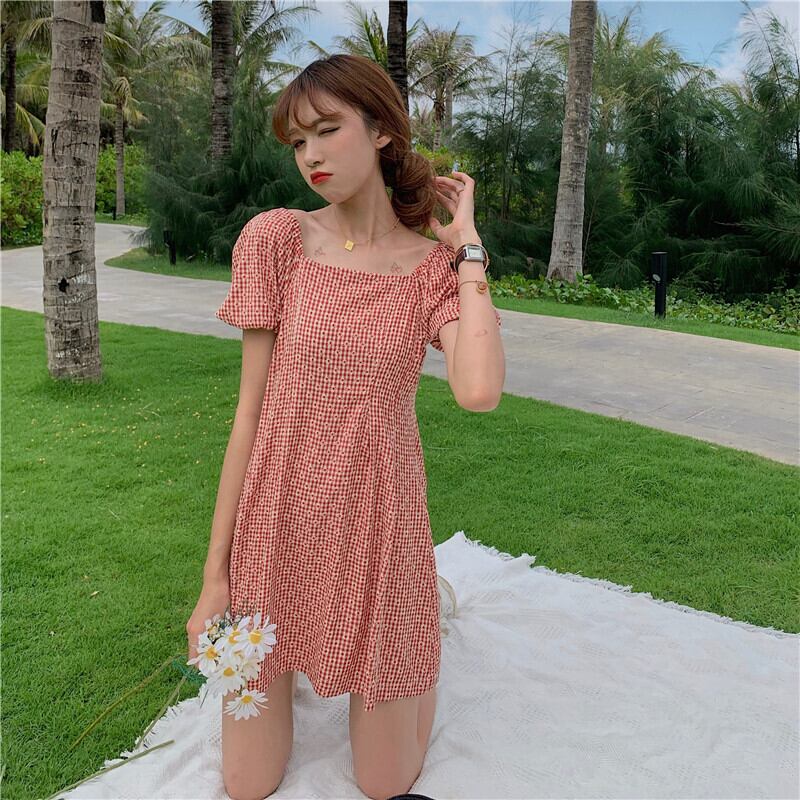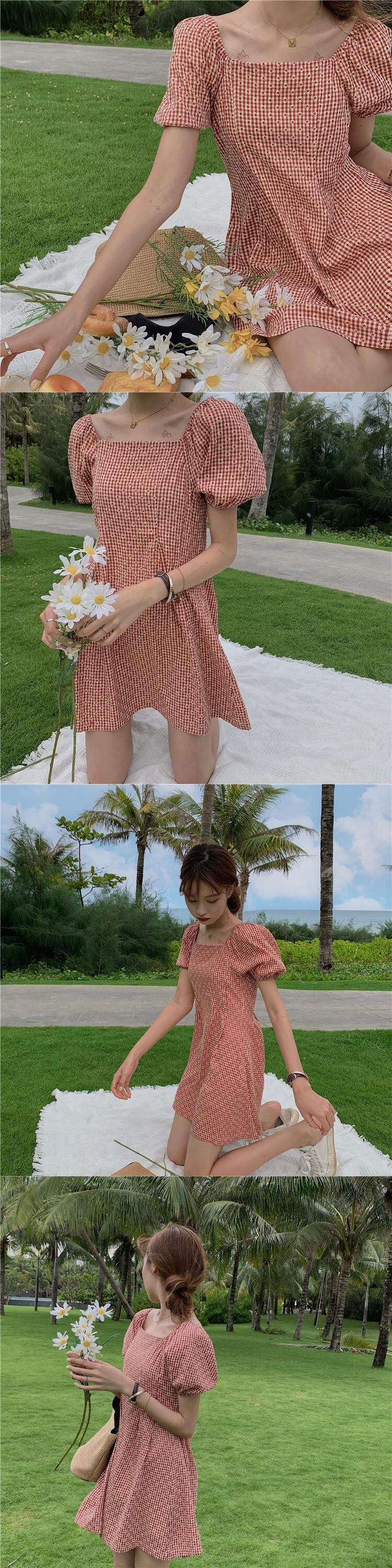 格子柄 チェックカラーウエストスリーブ 袖ドレス ワンピース花柄 お花 フラワー スカート スクウェア スクエア 女性 レディース フェミニン系5649395895 | nice import1 a5