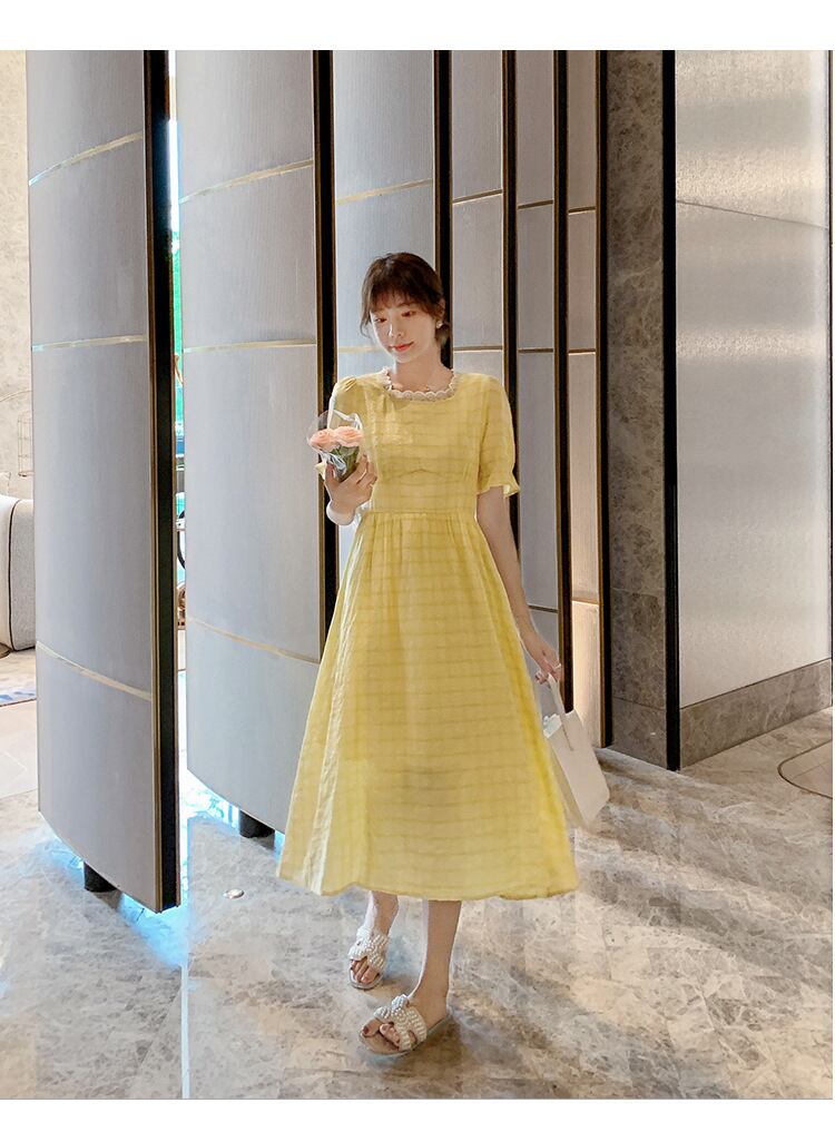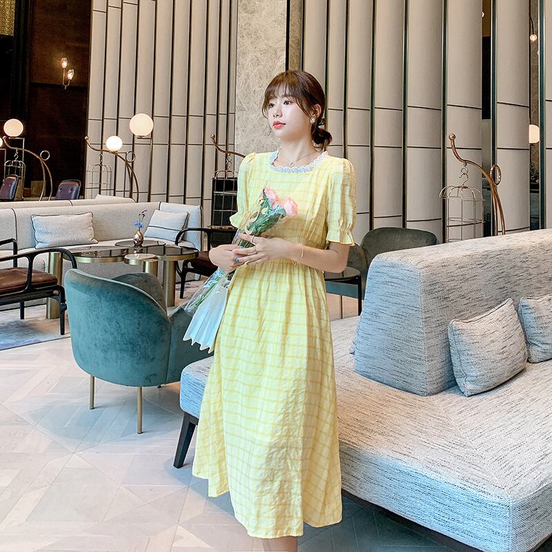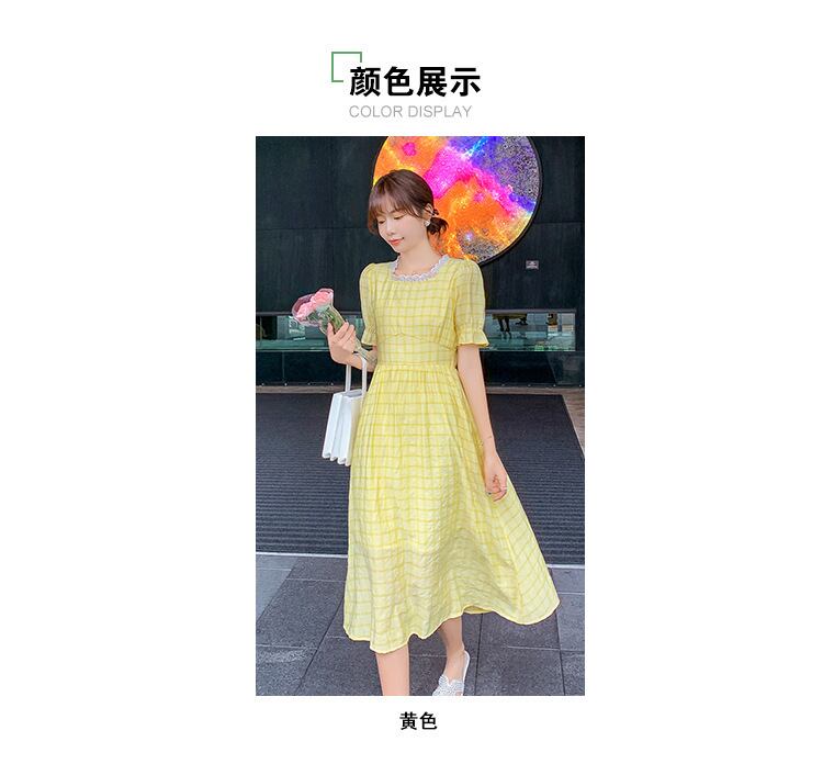 イエロー 黄色格子柄 チェックドレス ワンピースAラインウエストロング マキシ ロング丈 マキシ丈 マキシロング丈 スカート 女性 レディース フェミニン系44515890875 | nice import1 a5