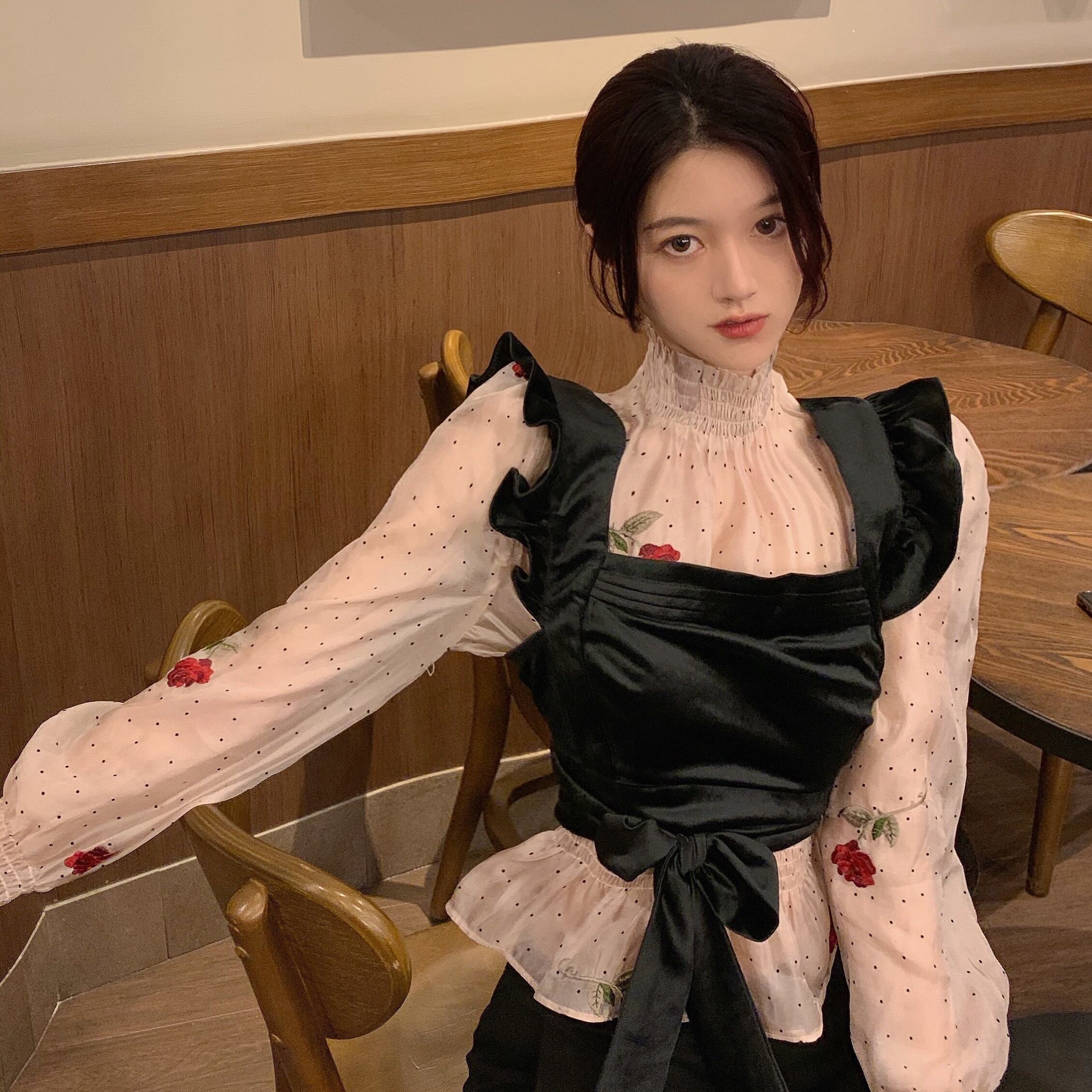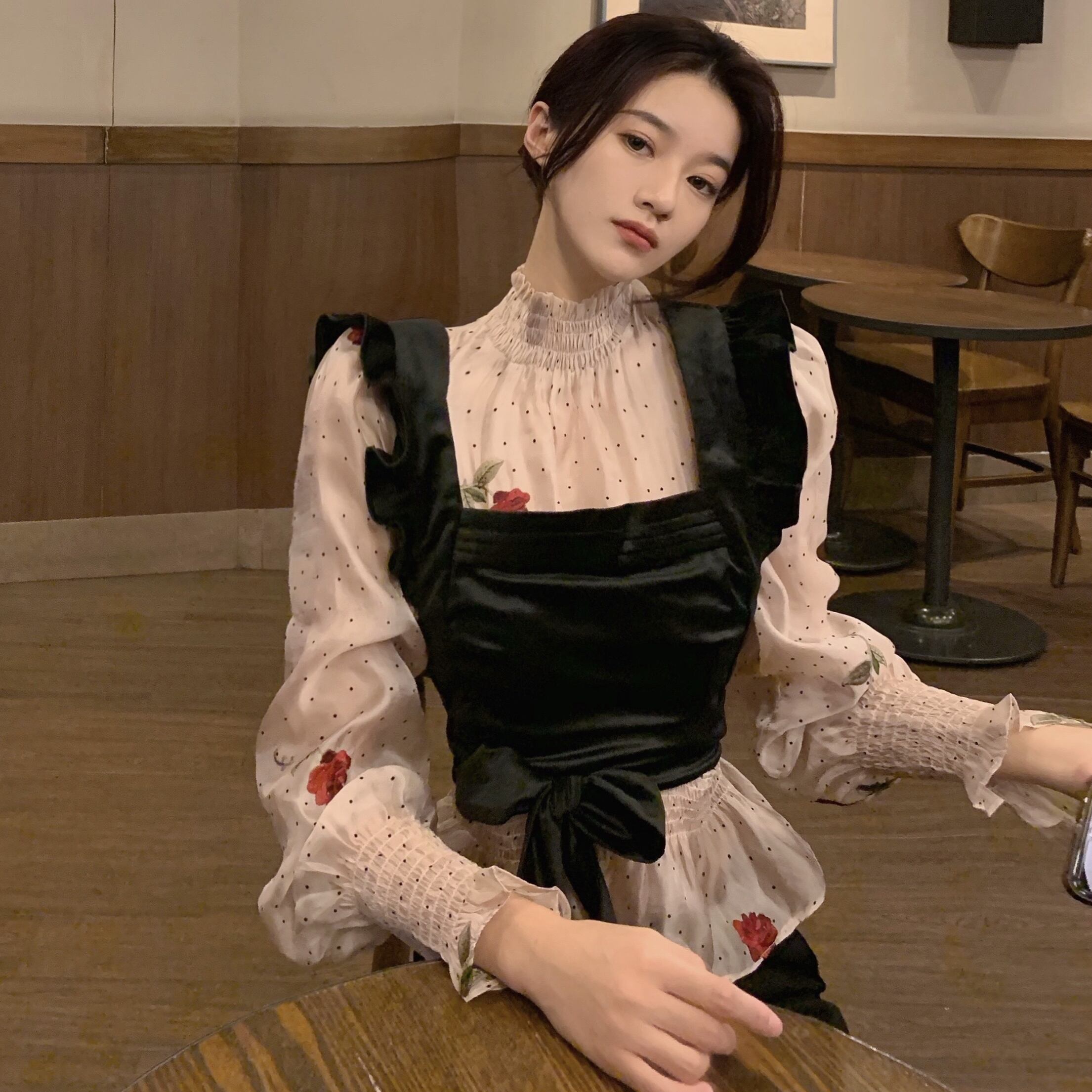 色:シャツ,ベルベットのベスト