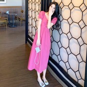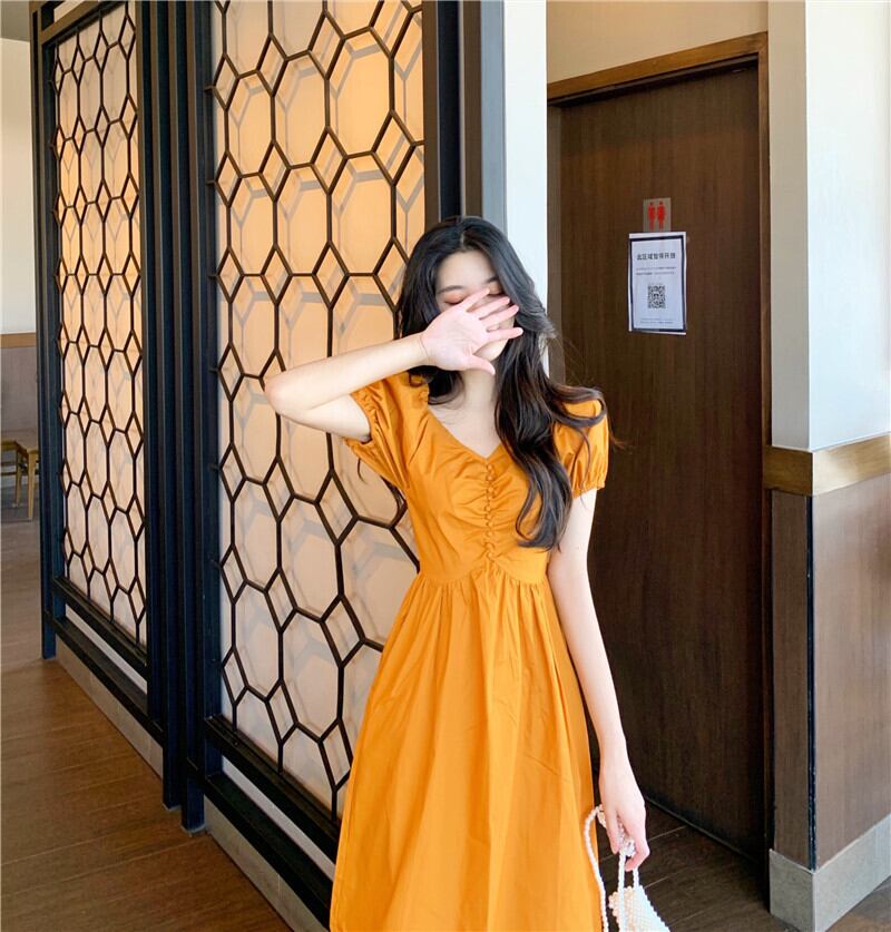 ソリッド カラースリーブ 袖Vネックドレス ワンピースハイウエストウエストロング マキシ ロング丈 マキシ丈スカート ハイウェスト マキシロング丈 ソリッドカラー 女性 レディース フェミニン系76214724034 | nice import1 a5