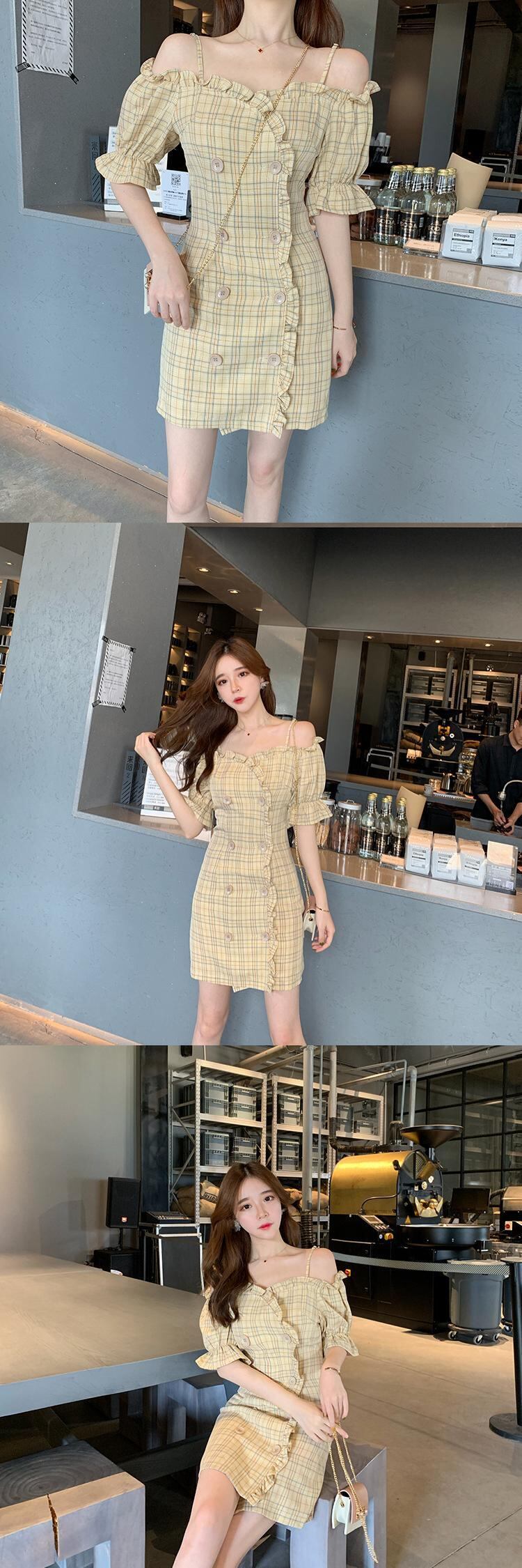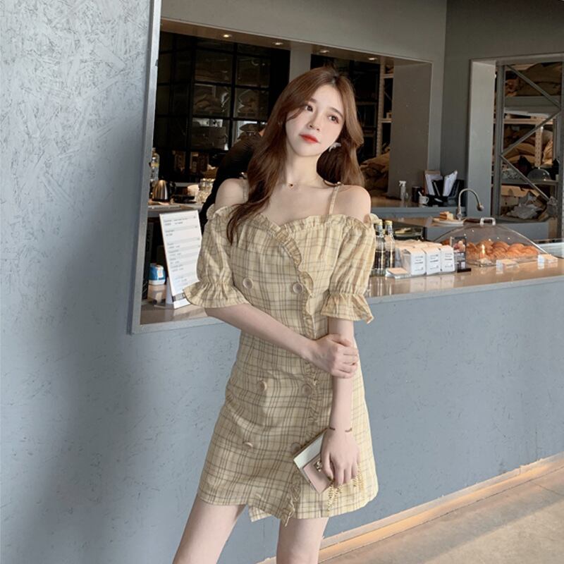 スタンダード格子柄 チェックスタイルスカート ドレス ワンピースウエスト レトロ 女性 レディース フェミニン系84227562899